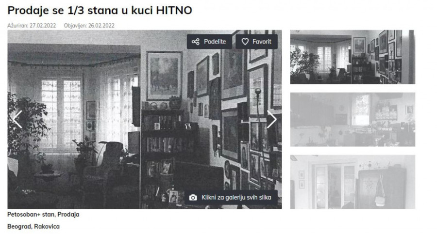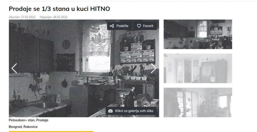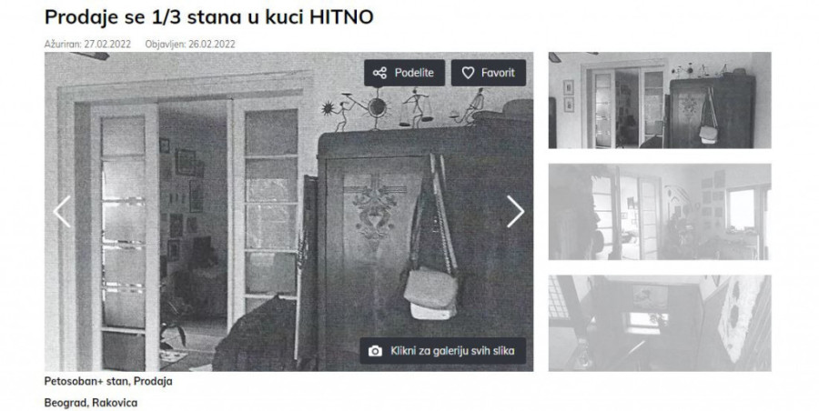 Na sajtu koji se bavi potragom nekretnina za izdavanje i prodaju osvanuo je oglas.