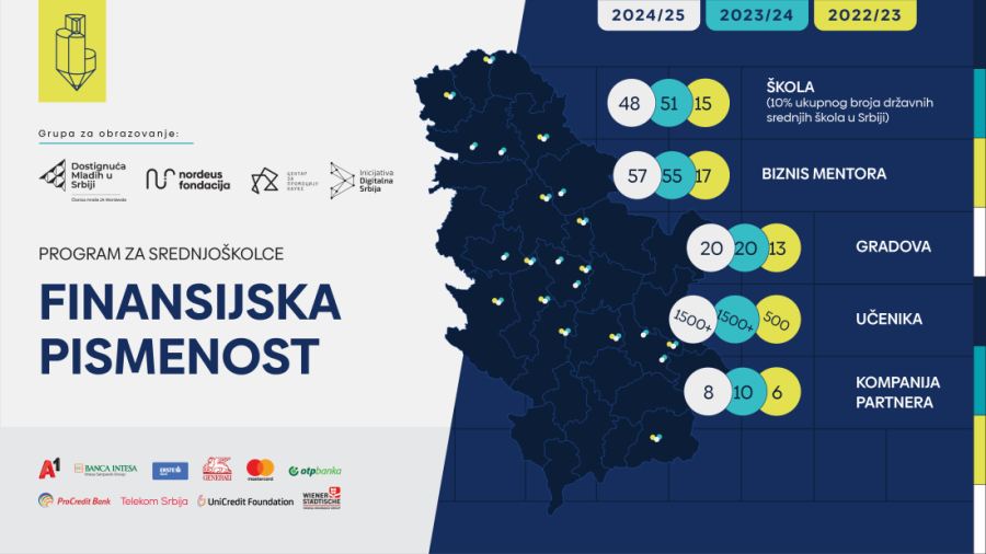 I ove godine će srpski srednjoškolci, njih 1.500 iz 48 srednjih škola, steći praktična znanja o upravljanju budžetom, prepoznavanju rizika, investiranju i korišćenju digitalnih alata, a sve zahvaljujući programu finansijske pismenosti.