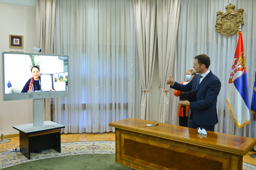 Potpisivanju su prisustvovali ministarka privrede Anđelka Atanasković i zamenica šefa Delegacije EU u Srbiji Mateja Norčić Štamcar.