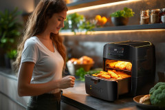 Airfryer, pak, briljira u brzini i efikasnosti. Zahvaljujući snažnoj cirkulaciji vrelog vazduha, hrana dobija hrskavu koricu uz minimalno ulja, što ga čini savršenim za povrće, grickalice i manja parčad mesa ili piletine.