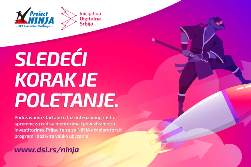 Od danas se domaćim startapima koji imaju tendenciju rasta i širenja na strana tržišta pruža prilika za intenzivan razvoj kroz NINJA akceleratorski program, novi projekat podrške startapima u organizaciji Inicijative "Digitalna Srbija” u partnerstvu sa Japanskom agencijom za međunarodnu saradnju (JICA). Ovaj tromesečni program otvara vrata ka mentorskim sesijama, potencijalnim investitorima, mogućnostima za razvoj poslovanja i izlazak na nova tržišta. Prijave su otvorene do 1. oktobra na www.dsi.rs/ninja.