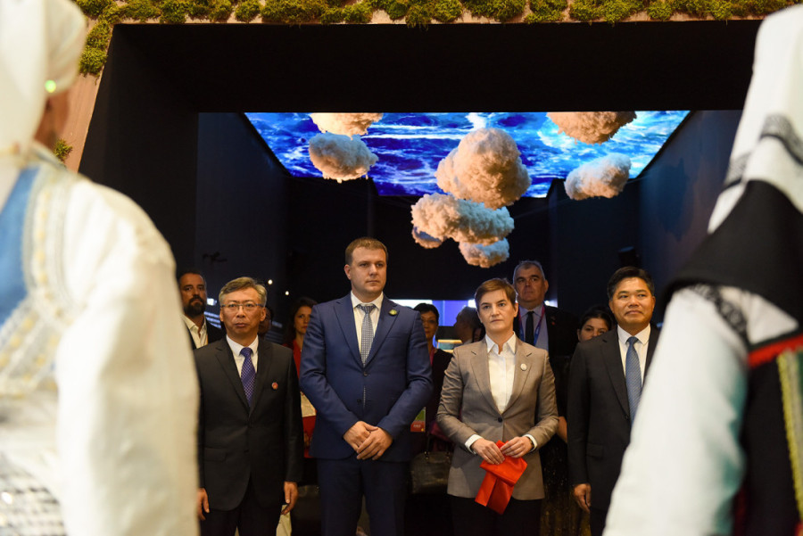 Brnabić je primetila i da postoji veliko intesovanje kineskih medija za Srbiju. Moto srpskog paviljona je "Hleb i reka", a autor Dušan Jovović objašnajava da je ideja da se kroz igru svetla, ornamente, Srbija predstavi kao moderna država koja ne odustaje od tradicije.