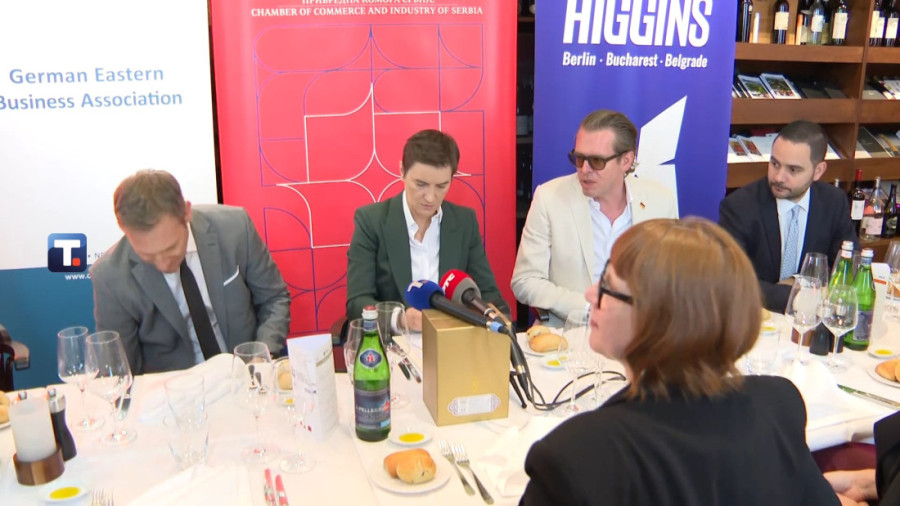 Brnabićeva je predstavila ekonomske pokazatelje Srbije i saradnju sa nemačkim kompanijama i dodala da će od Nemaca želeti da čuje i kako napreduju njihova dva velika projekta koja se tiču eksploatacije litijuma - Vulkan i Zinvald.