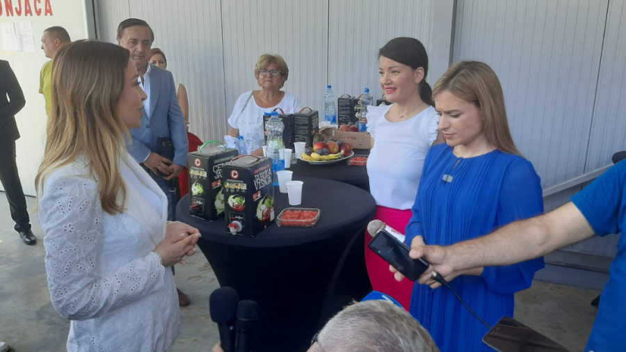 - Bila je čast upoznati jednu sjajnu damu, vrlo sposobnu i posvećenu svom poslu i svojoj porodici. Irena Jovanović je jedna od najuspešnijih preduzetnica u Topoli. Vlasnica je porodične firme koja sada zapošljava 10 ljudi, ali imaju u planu da pokrenu pogon za preradu voća i pravljenje sokova, što bi značilo i otvaranje novih radnih mesta. Pozvala sam je da se prijavi na neki od naših novih konkursa podrške maloj privredi, i tako uz pomoć svoje države realizuje novi biznis plan - rekla je Mesarovićeva.