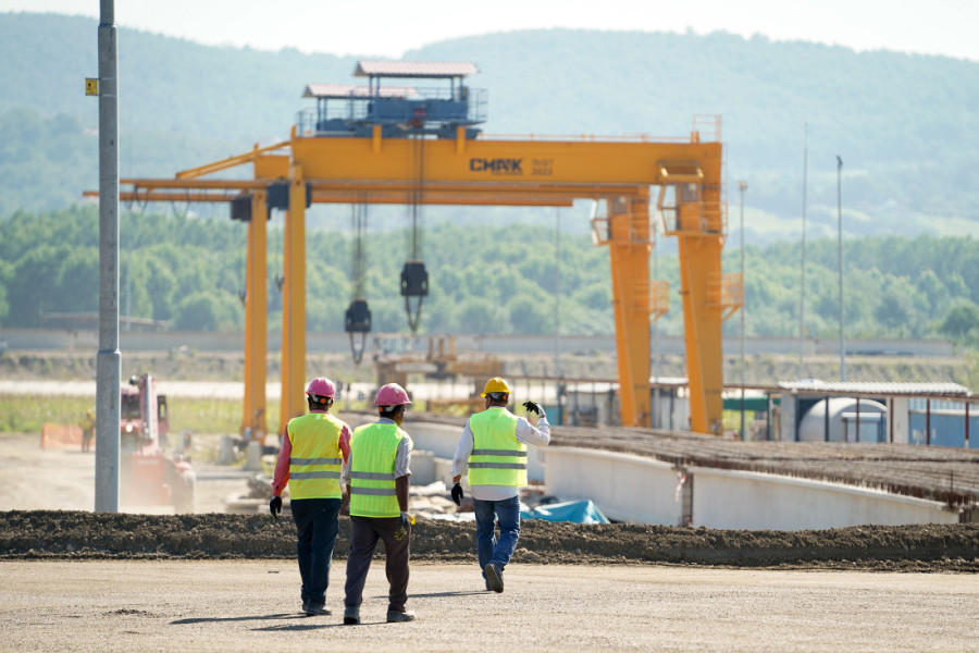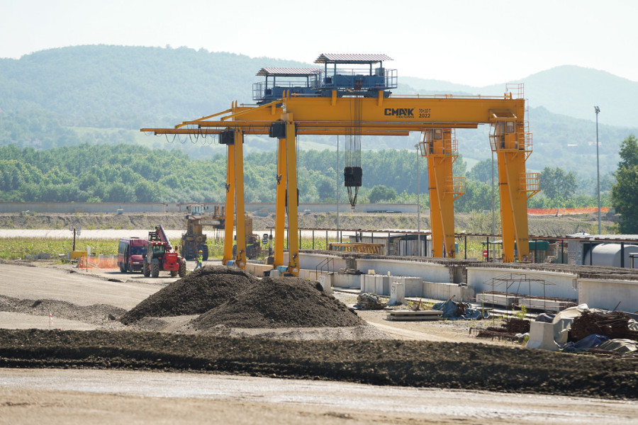Predsednik Vlade Miloš Vučević obilazi radove na petlji Adrani sektori 3 Moravskog koridora zajedno sa ministrom građevinarstva, saobraćaja i infrastrukture Goranom Vesićem.