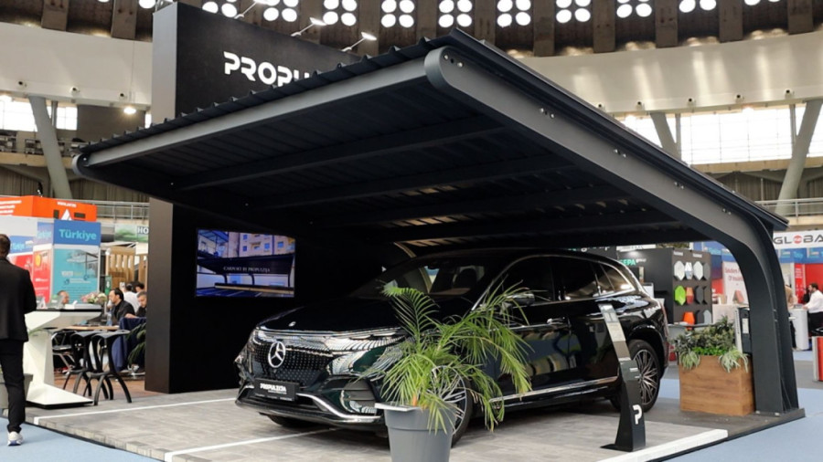 Površina nadstrešnice i njena visina su stvar potrebe klijenta, a neki standardni minimum je za dva parking-mesta, kao što je prikazano na Sajmu.