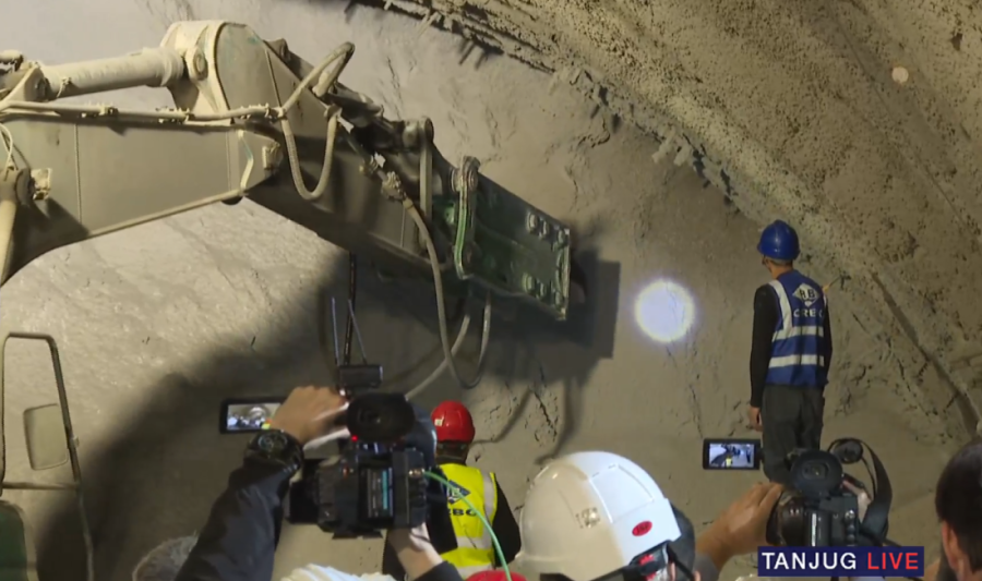 Desna tunelska cev u dužini oko 3,5 kilometara probijena je danas u prisustvu predsednika Srbije Aleksandra Vučića, kao i ambasadora Kine u Srbiji Li Ming, ministarke građevine Aleksandre Sofronijević, predsednice Vlade Vojvodine Maje Gojković, direktora Koridora Srbije i Puteva Srbije Aleksandra Atića i Zorana Drobnjaka, te gradonačelnika Novog Sada Žarka Mićina.