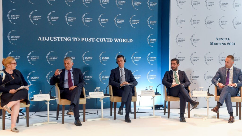 Učesnici panela na temu: “Infrastrukture i agende konektivnosti” u okviru Kopaonik biznis foruma; Foto: Tanjug/Tanja Valič