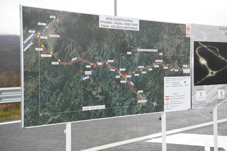 "Odavde će da se krene ka Bogutovačkoj banji, Mataruškoj banji. To je ovaj put ovde pored Magliča. Projekat će se menjati zbog Studenice, zbog zaštite nacionalnog parka i svega drugog. Ali, možete li da mislite šta će to da znači za Ušće, za Rašku, za Novi Pazar koji je sedmi po većini grad u Srbiji?", upitao je Vučić.