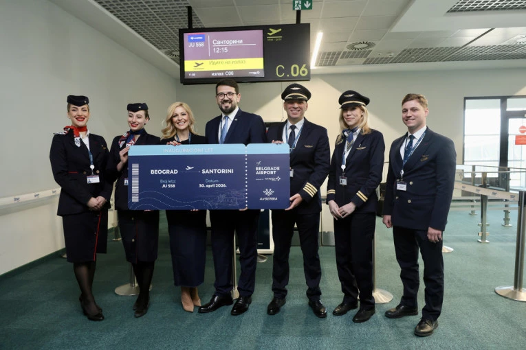 Prvi let iz Beograda za Santorini, koji je bio ispunjen do poslednjeg mesta, ispraćen je presecanjem crvene trake neposredno pre ukrcavanja putnika i članova posade u Embraer E-195 u Beogradu.