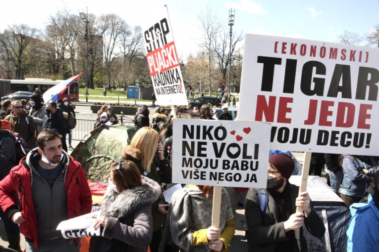 Učesnici protesta nose transparente sa natpisima “Stop uništenju frilensera”, “(Ekonomski) tigar ne jede svoju decu”, “Sistem nije radio – mi jesmo, ko je kriv?”…