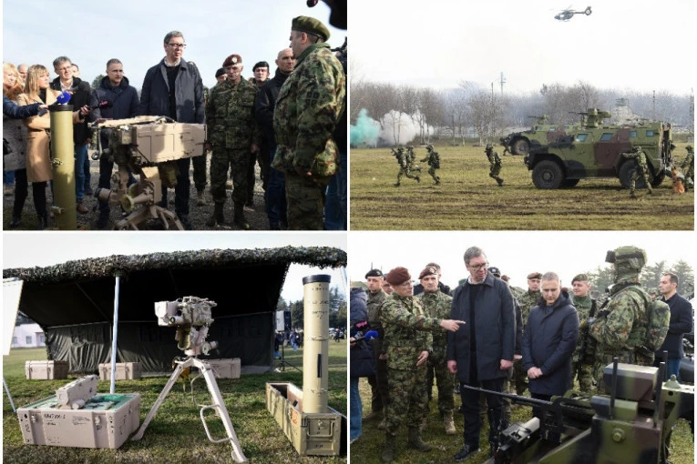 Pripadnici srpske armije predstavili su Aleksandru Vučiću najsavremeniji protivoklopni sistem "kornet", ističući da služi za uništavanje oklopnih vozila, savremenih tenkova, utvrđenih objekata, ističući da niko u regionu nema takvo borbeno sredstvo.
