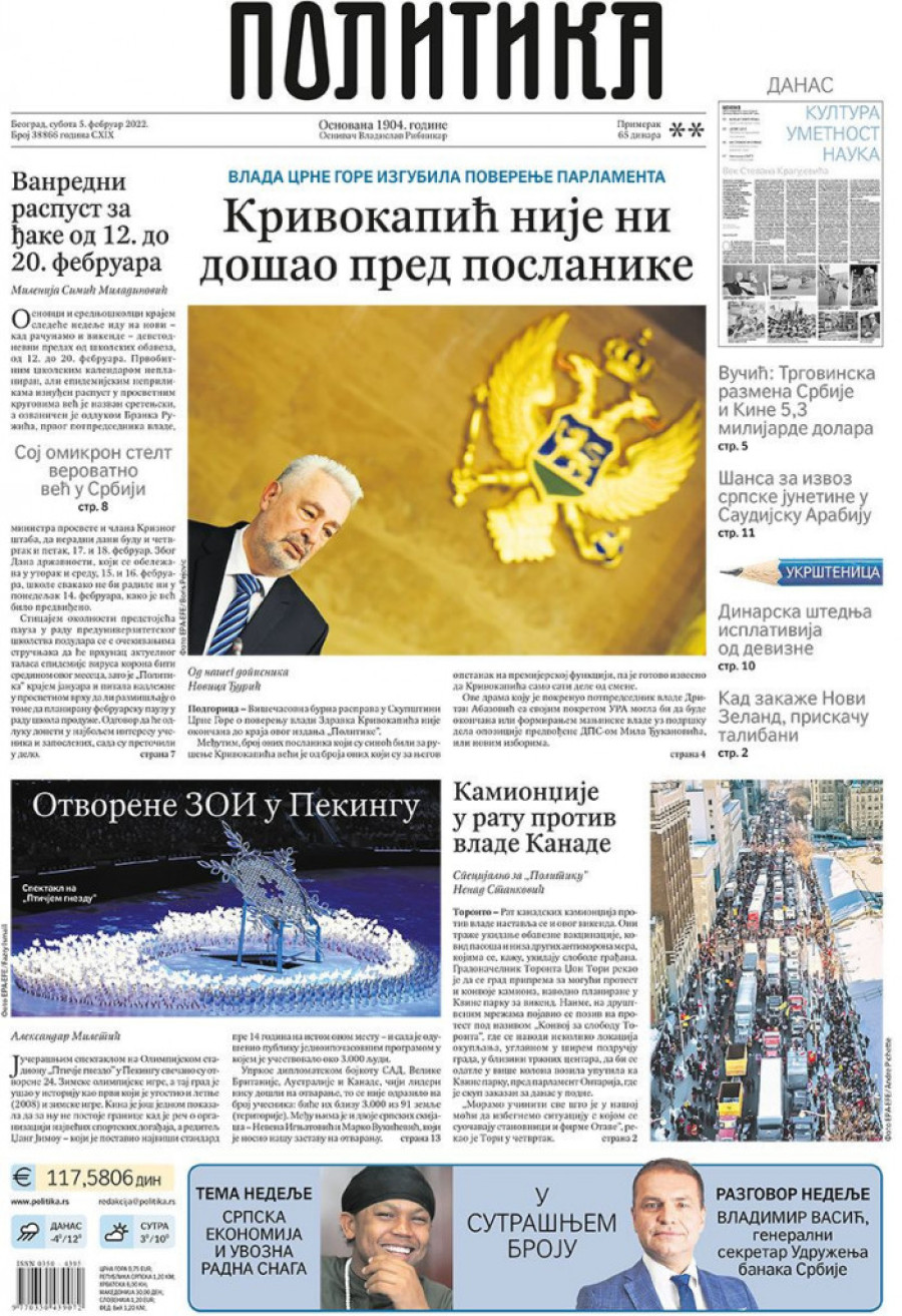 Prelistavanje štampe za subotu 5. februar 2022. godine