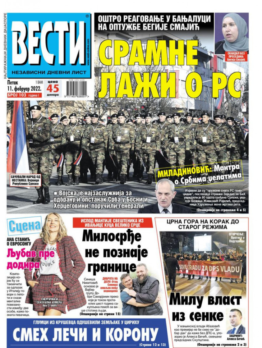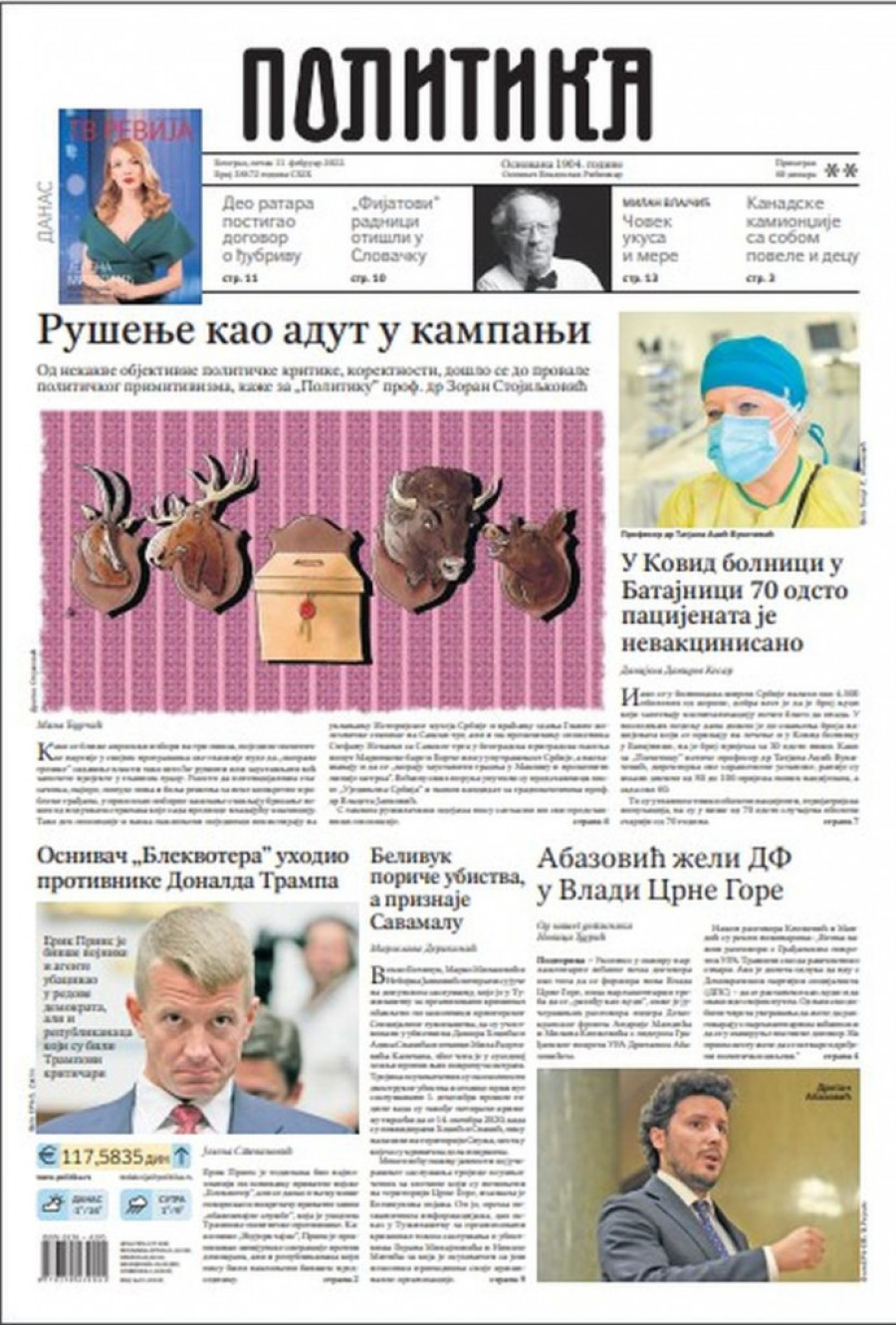 Naslovne strane novina za petak 11. februar 2022. godine