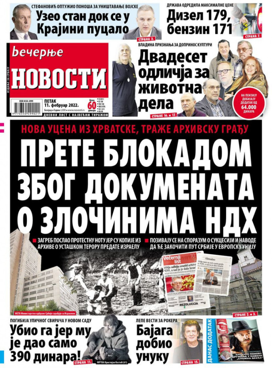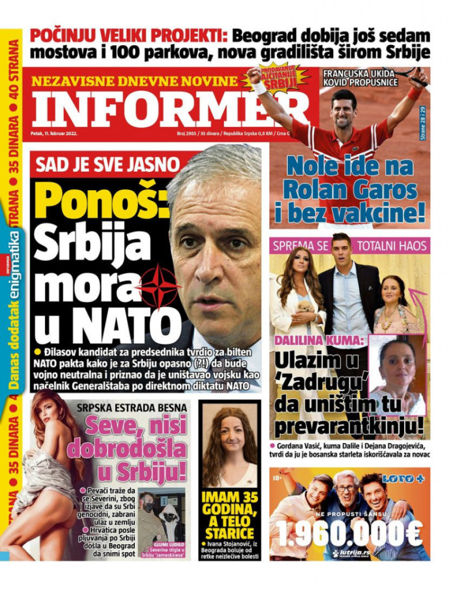 Dnevne novine u Srbiji za petak 11. februar 2022. godine na naslovnim stranama najavljuju brojne aktuelne društveno-političke teme i donose ekskluzivne priče.