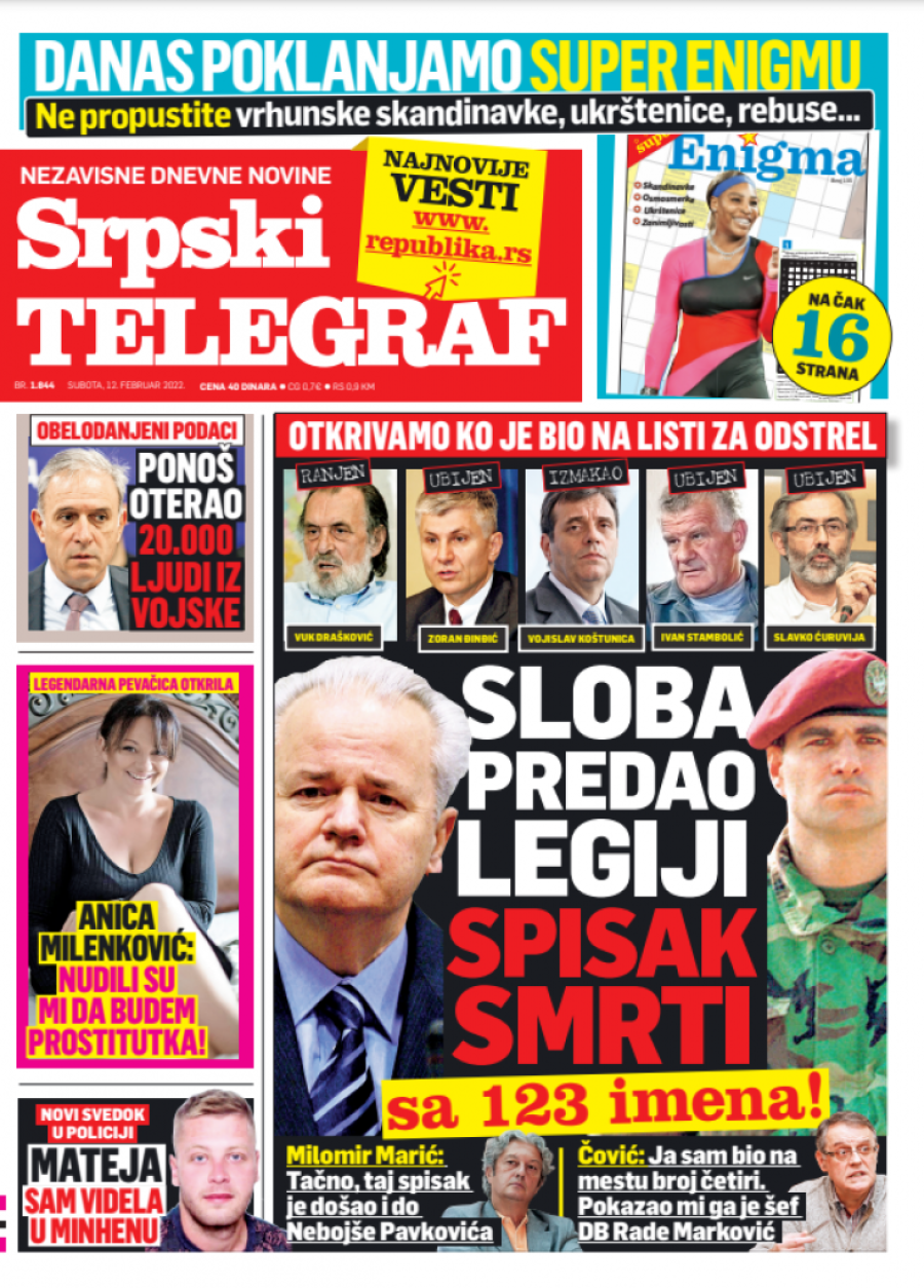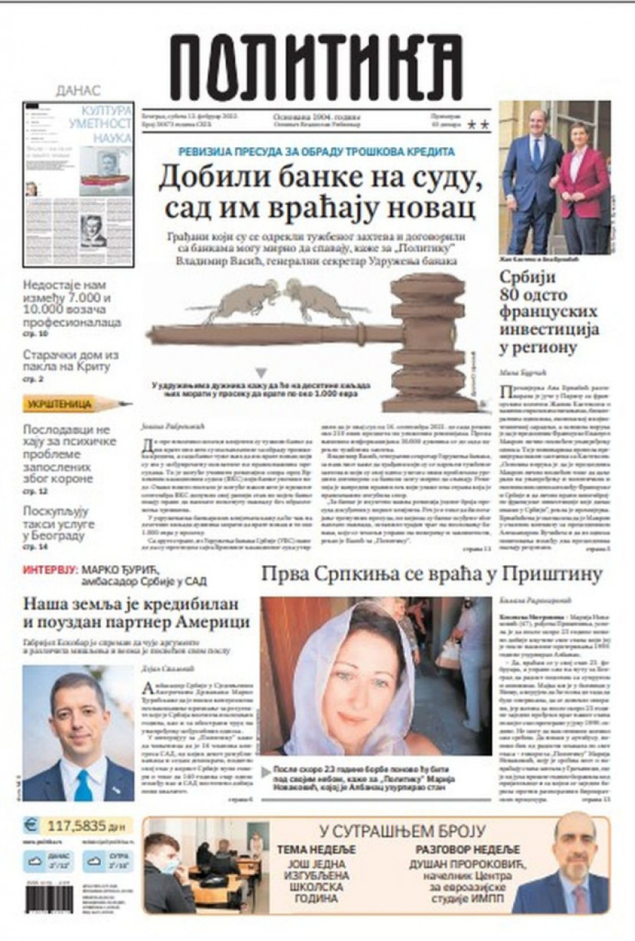 Dnevne novine u Srbiji za subotu 12. februar 2022. godine na naslovnim stranama najavljuju brojne aktuelne društveno-političke teme i donose ekskluzivne priče.