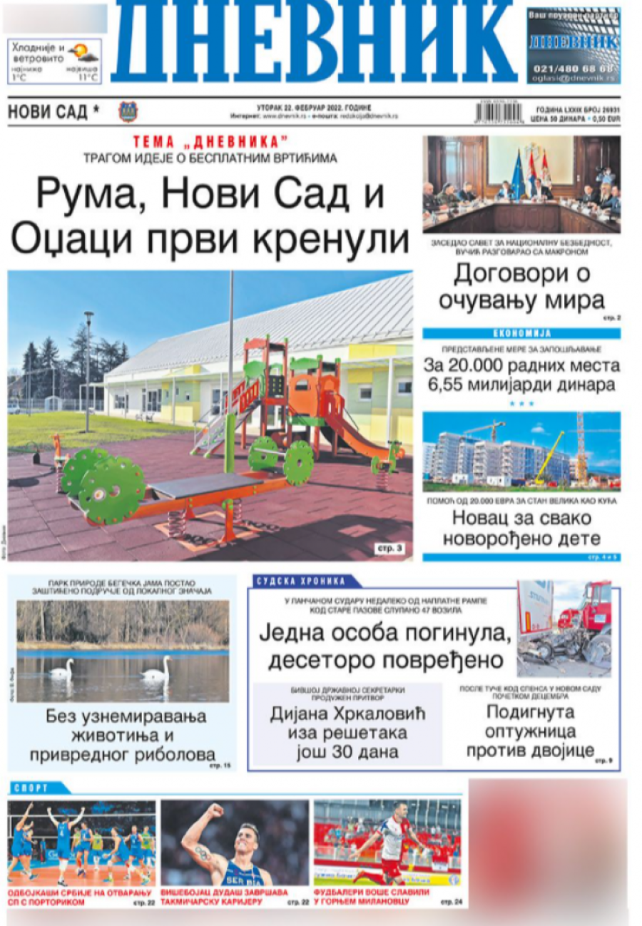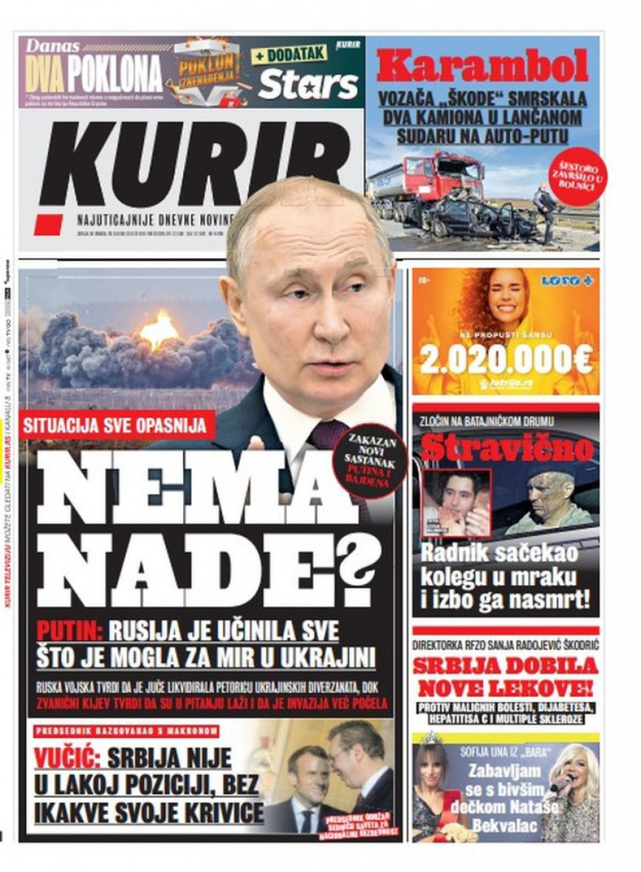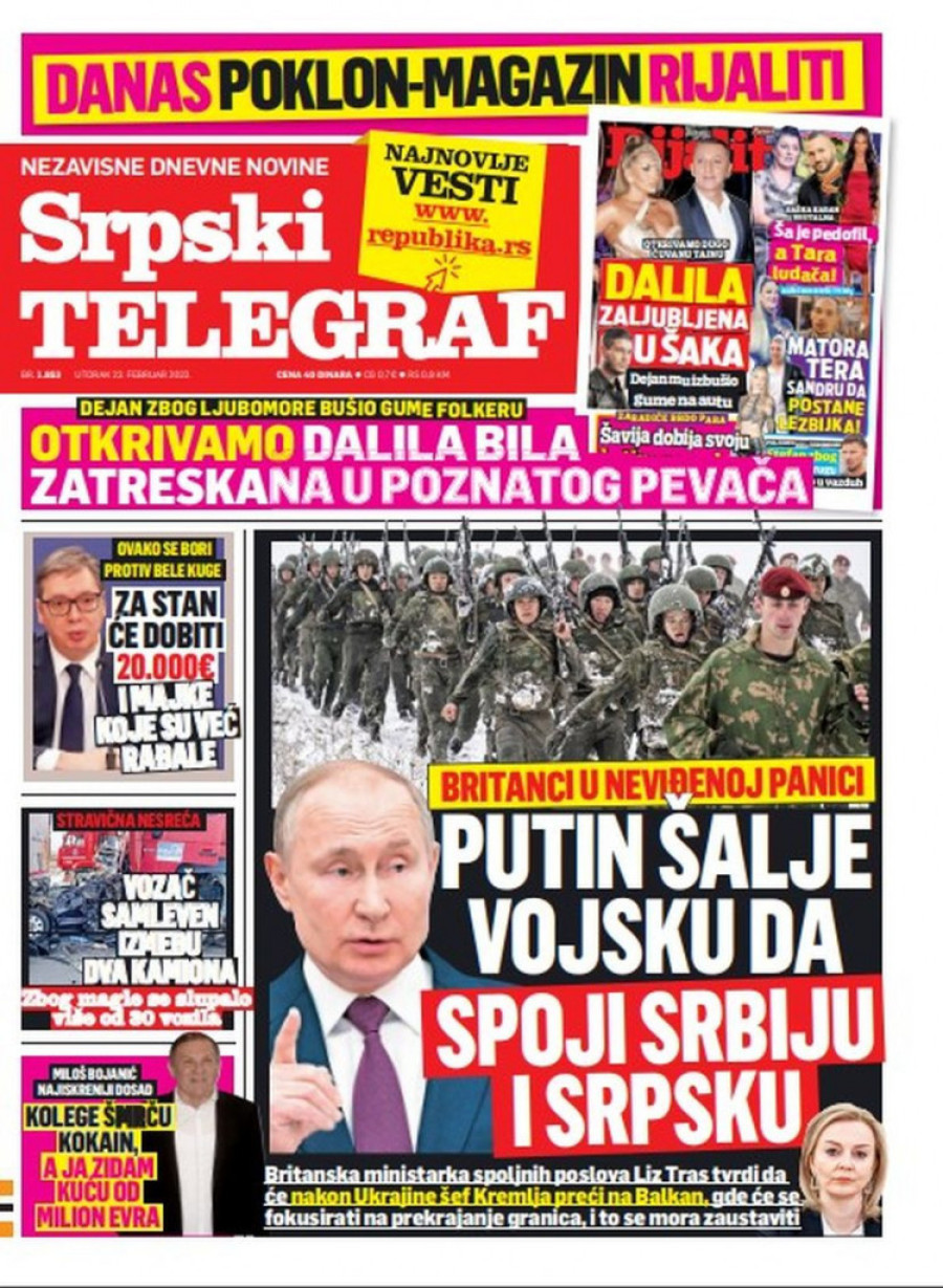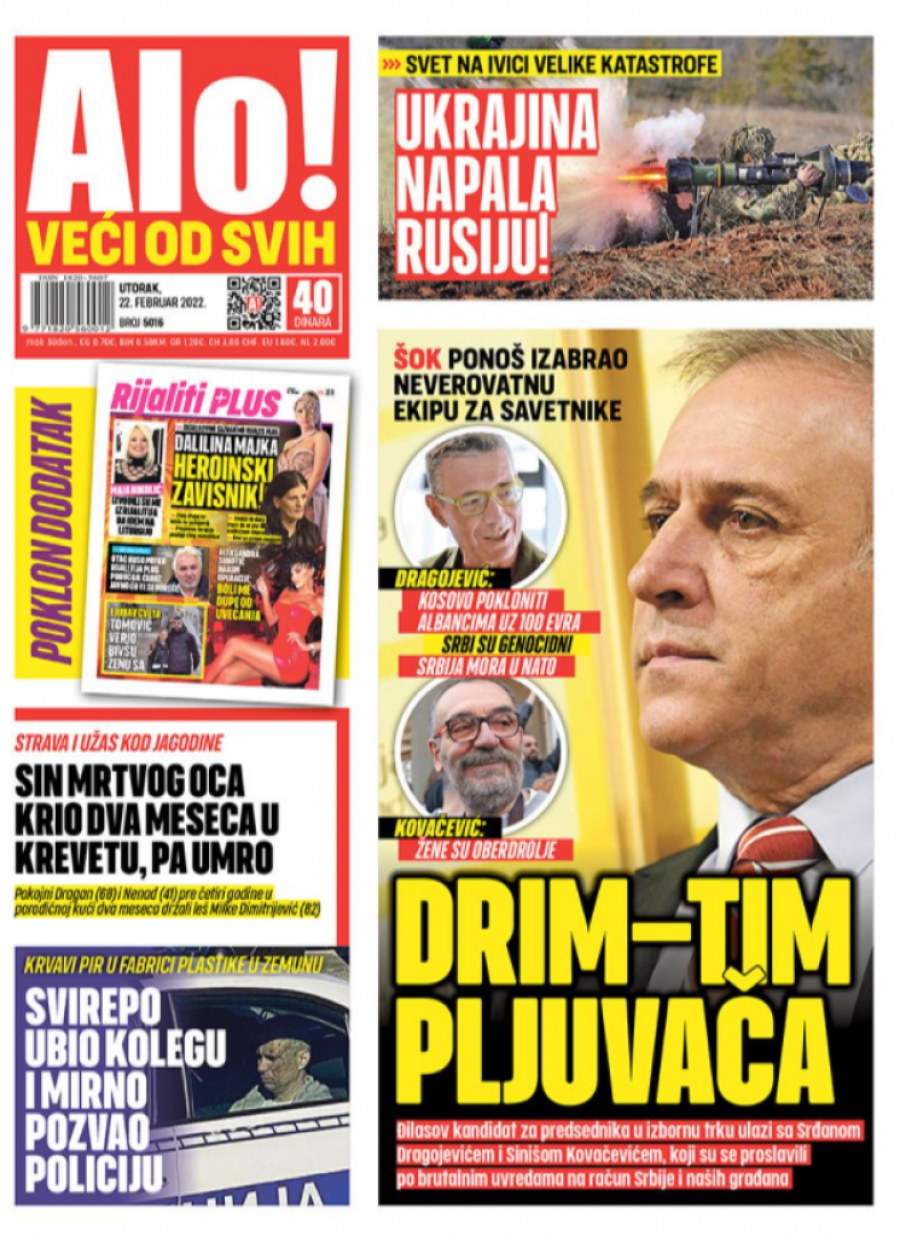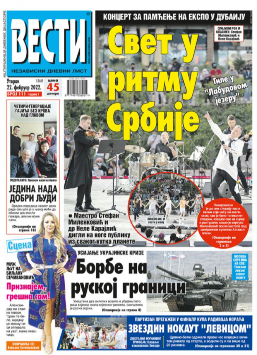 Dnevne novine u Srbiji za utorak 22. februar 2022. godine na naslovnim stranama najavljuju brojne aktuelne društveno-političke teme i donose ekskluzivne priče.