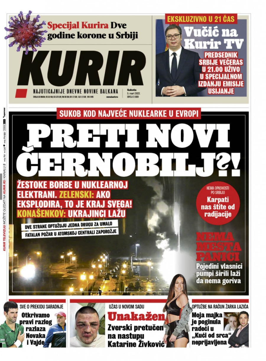 Dnevne novine u Srbiji za subotu 5. mart 2022. godine na naslovnim stranama najavljuju brojne aktuelne društveno-političke teme i donose ekskluzivne priče.