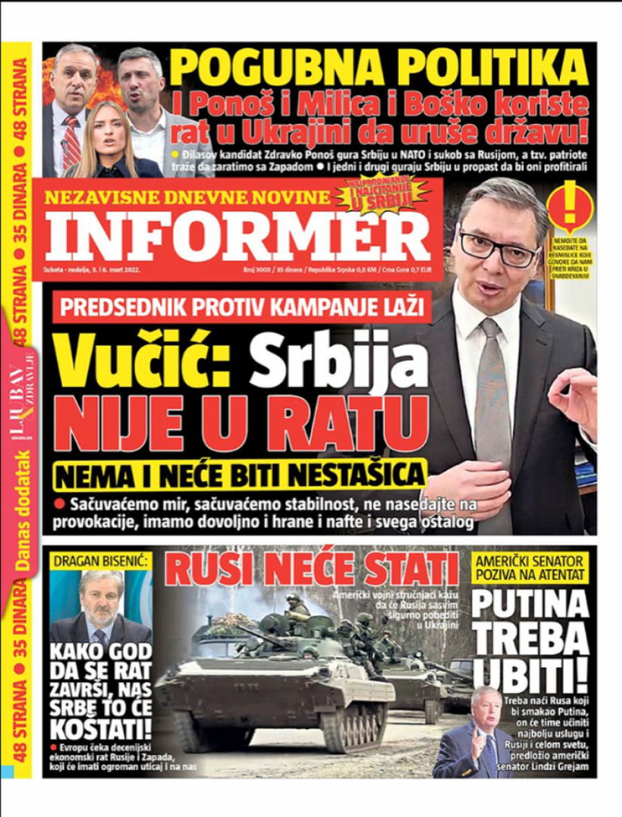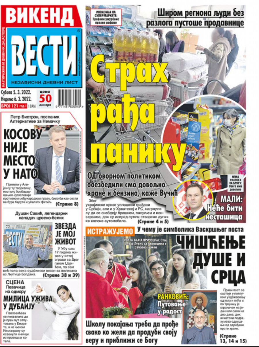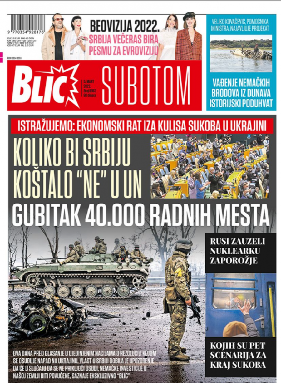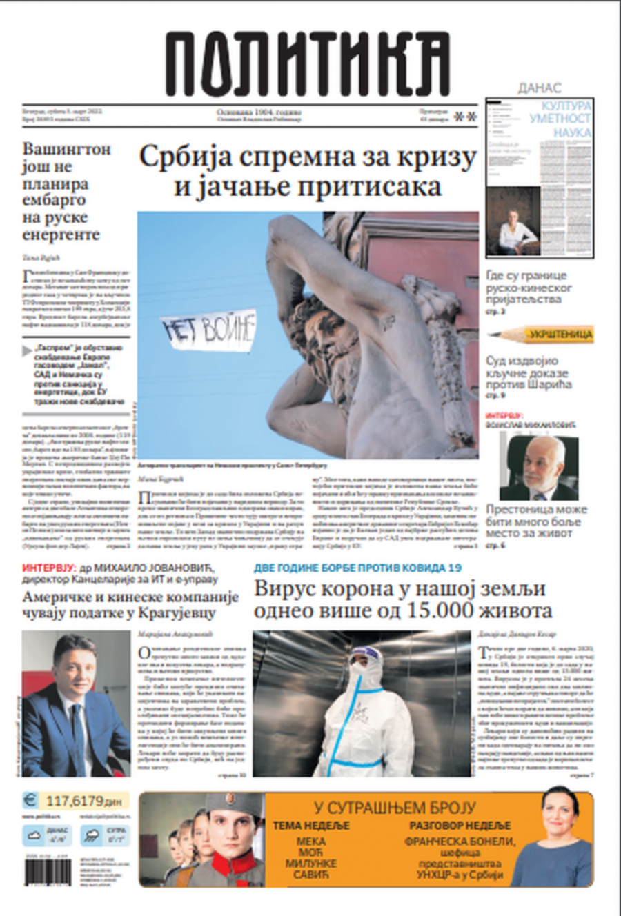 Prelistavanje štampe za subotu 5. mart 2022. godine