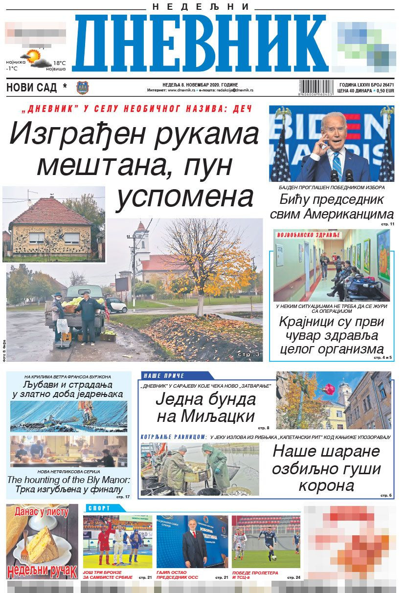 Dnevne novine u Srbiji za nedelju, 8. novembar 2020. godine, na naslovnim stranama pišu o brojnim aktuelnim društveno-političkim temama i donose brojne ekskluzivne priče.