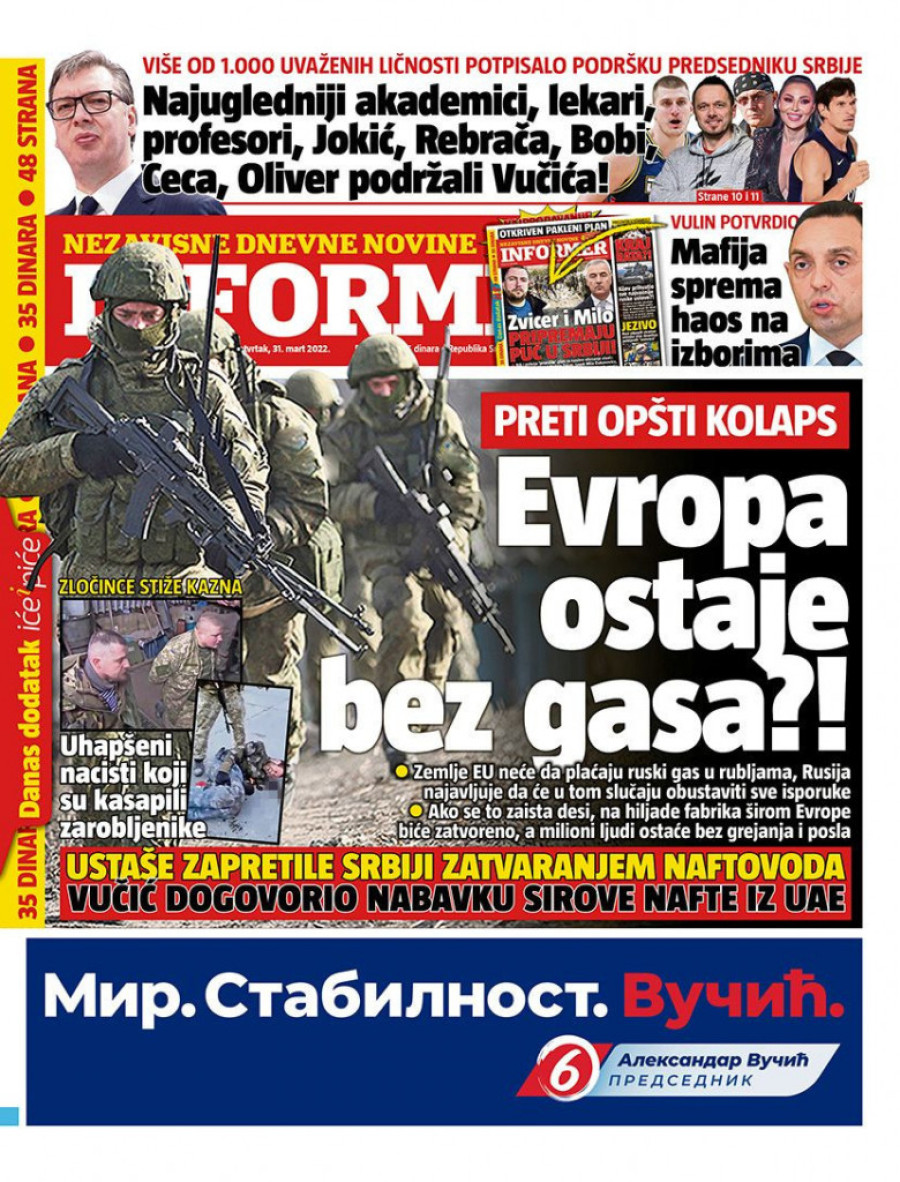 Prelistavanje štampe za četvrtak 31. mart 2022. godine