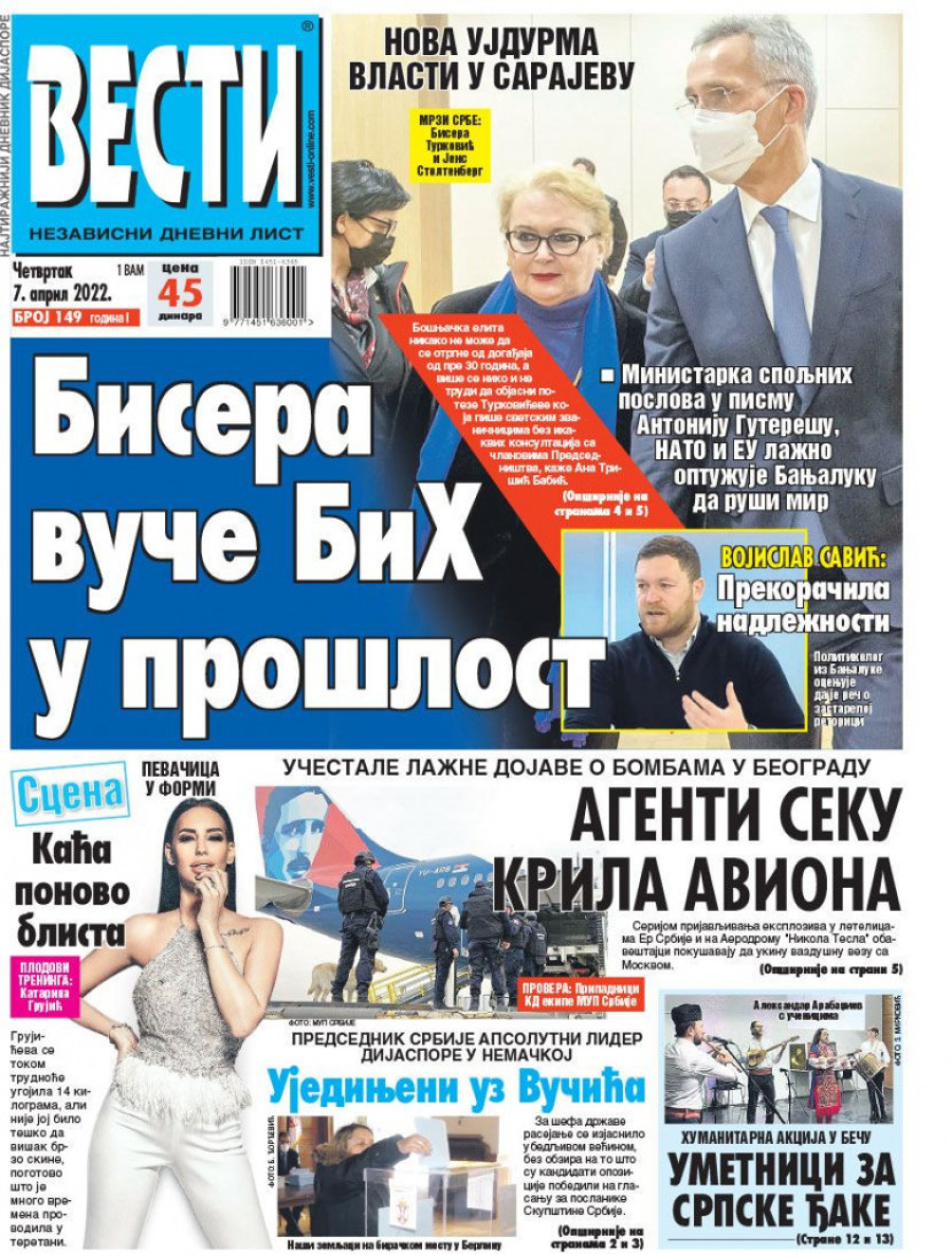 Dnevne novine u Srbiji za četvrtak 7. april 2022. godine na naslovnim stranama najavljuju brojne aktuelne društveno - političke teme i donose ekskluzivne priče.