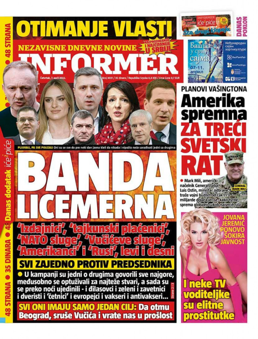 Prelistavanje štampe za četvrtak 7. april 2022. godine