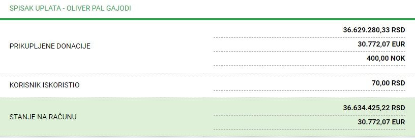 Na sajtu te Fondacije stoji poziv ljudima za pomoć za skupljanje sredstava za lečenje deteta Olivera Pal Gajodia, uz tekst o svemu što se dosad dešavalo, a što je njegova majka ispričala za naš portal. Takođe, stoji i kolika je suma novca prikupljena do juče popodne.
