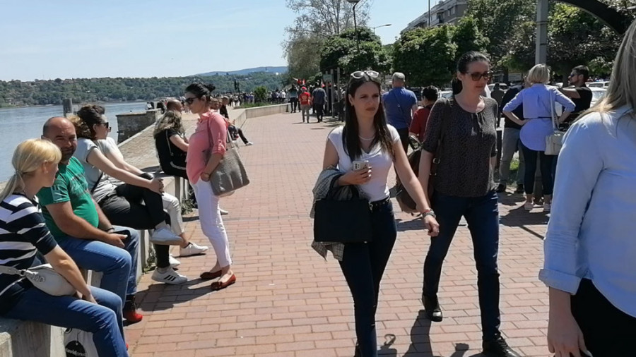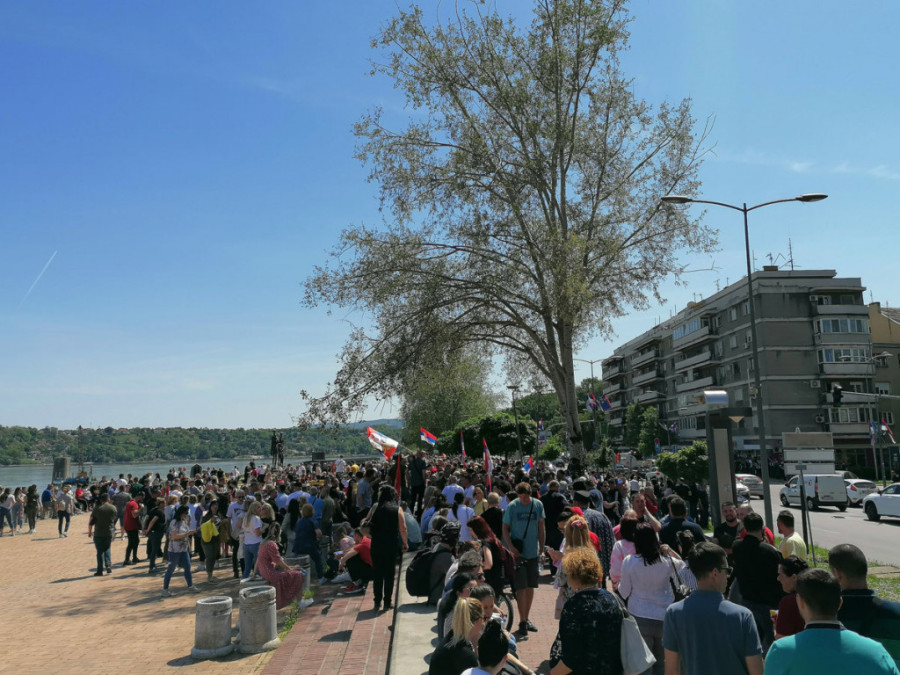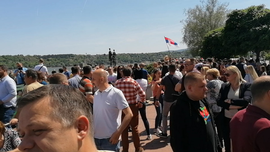 Kasko javlja reporter 24sedam ljudi su več oko 13 sati počeli da se okupljaju, a među njima je dosta mladih. Nose zastave Srbije i Rusije, kao i one iz doba komunizma.