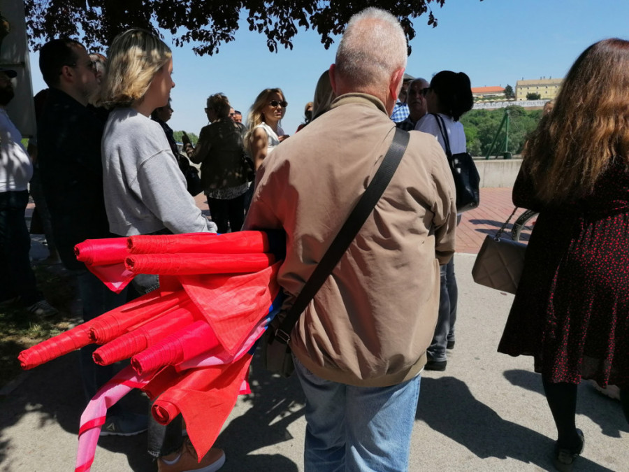 Nakon što je svečana šetnja završena u 14.50 učesnici su spakovali zastavu koju su prethodno u koloni nosili.