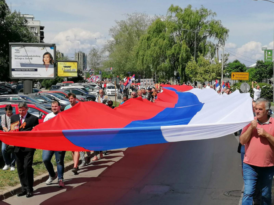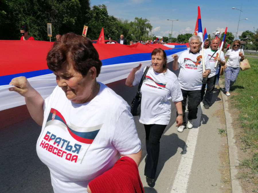 Na šetnji nisu bile dozvoljene političke poruke i ikonografija, a u koloni su se nosile fotografije poginulih predaka i rođaka, zastave Rusije i Srbije.