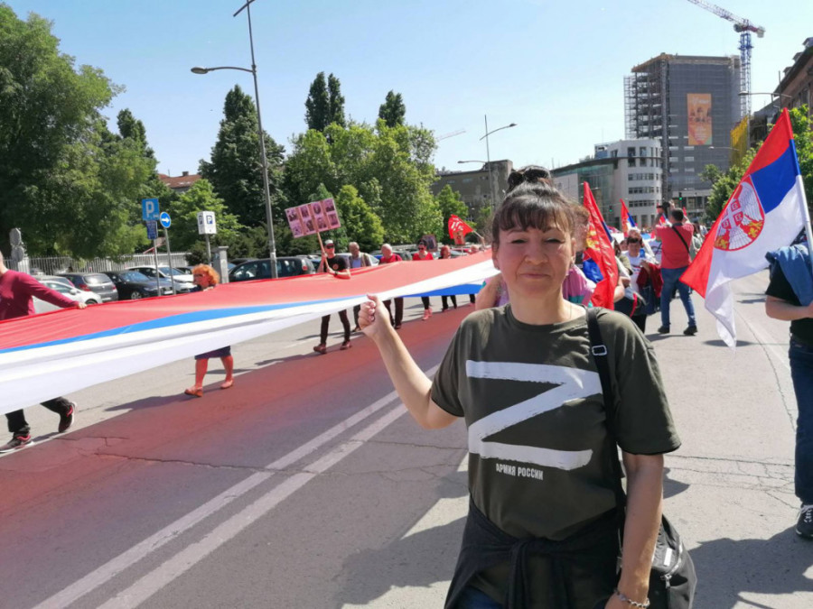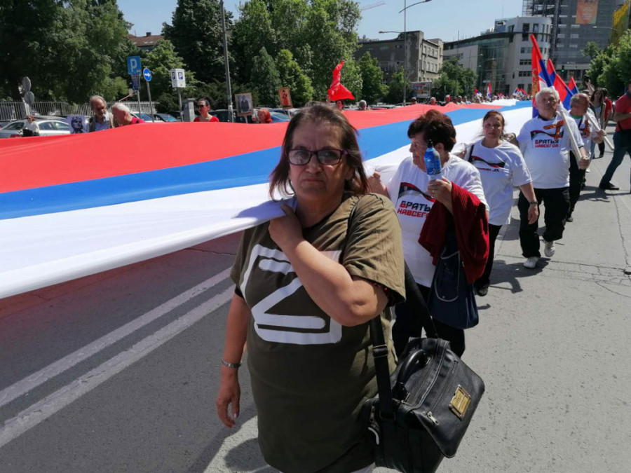 Mnogi građani su sa balkona aplauzima pozdravljali kolonu. U jednom trenutku ljudi su počeli da pevaju "U boj krenite junaci svi." Oni koji nose dugu zastavu uzvikuju "Rusija, Srbija."