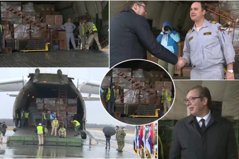 – Stigla je oprema za jednu komplet bolnicu, a biće raspoređena u više kliničkih centara, tamo gde je najpotrebnija. Jedna magnetna rezonanca sama teška je 14 tona. To su sprave od milion evra. Slajsni skener, pokretni slajsni skener, rendgen aparati, respiratori, kako obični, tako i hajflou. Poslal su i 30.000 skafandera, svakakve vrste potrošne robe… To je višemilionska pomoć – istakao je predsednik Srbije.