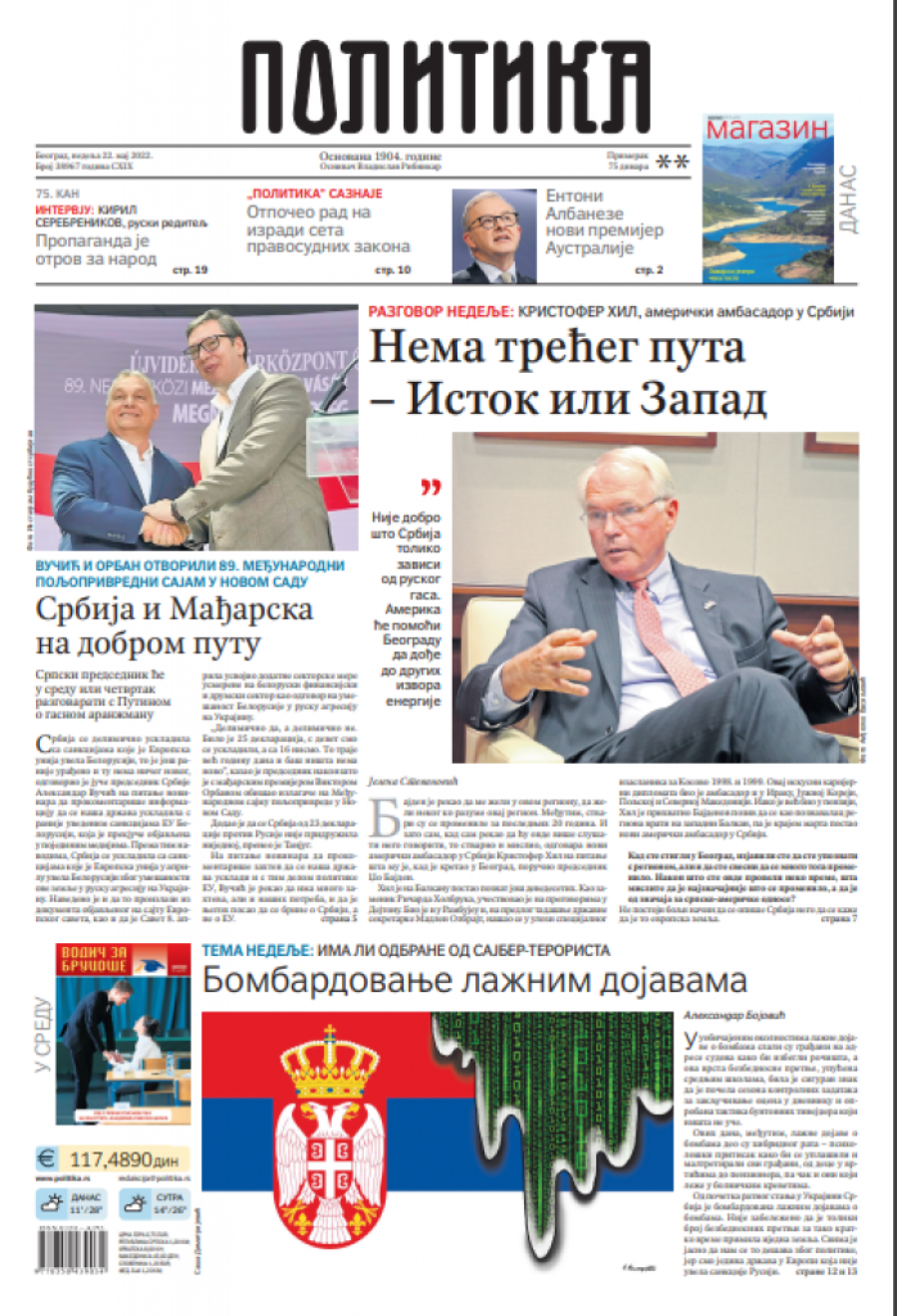Prelistavanje štampe za nedelju 22. maj 2022. godine