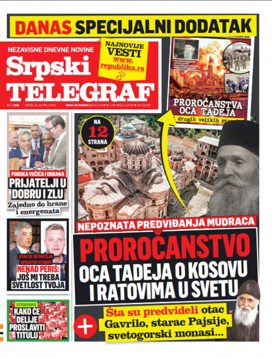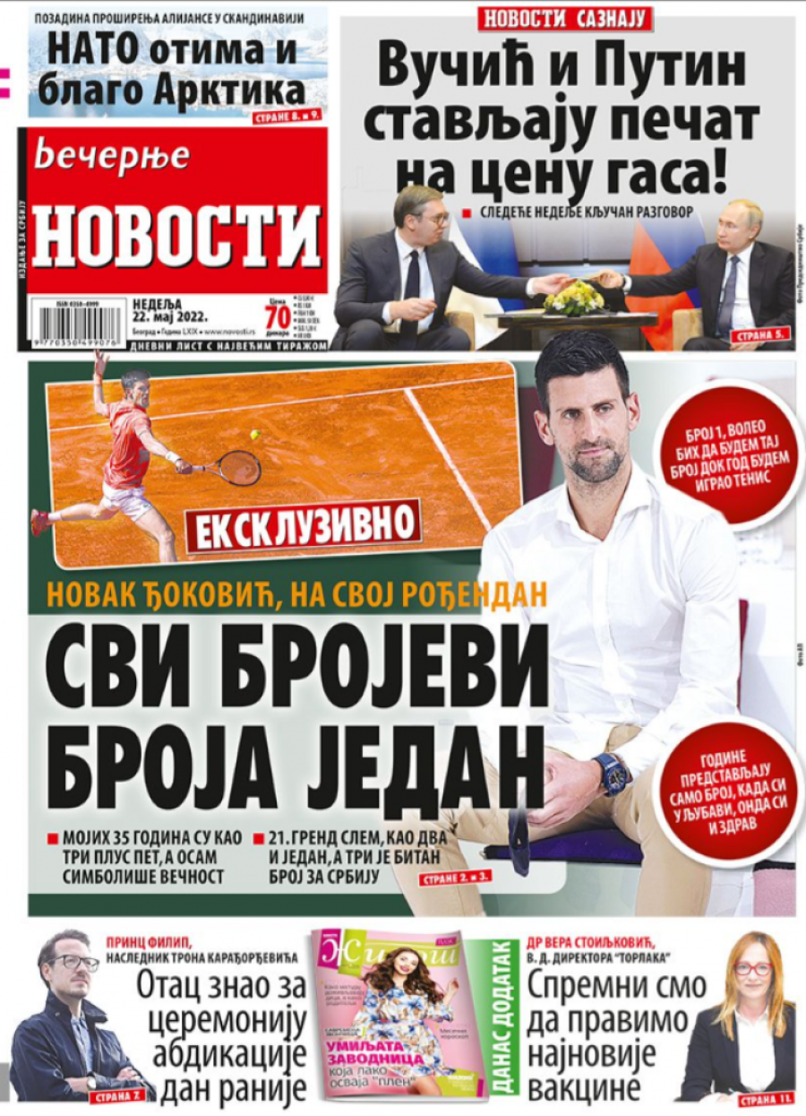 Dnevne novine u Srbiji za nedelju 22. maj 2022. godine na naslovnim stranama najavljuju brojne aktuelne društveno-političke teme i donose ekskluzivne priče.