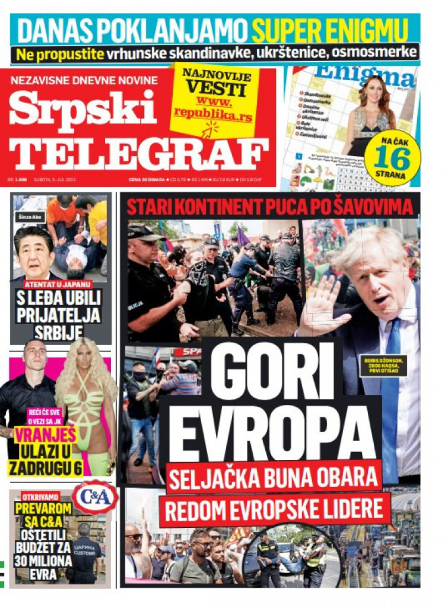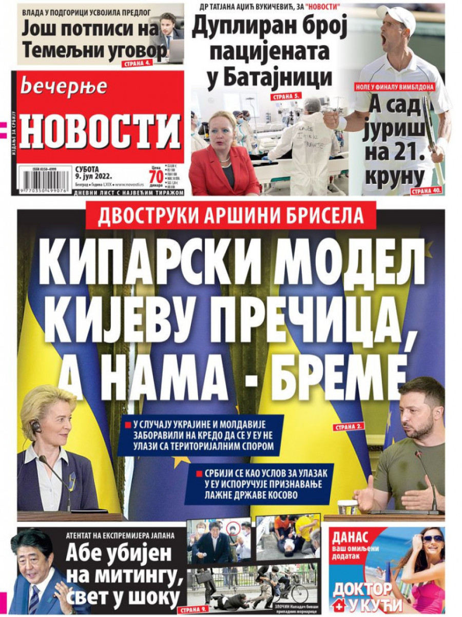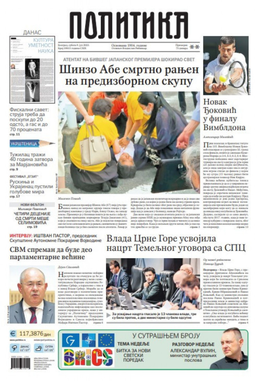 Prelistavanje štampe za subotu 9. jul 2022. godine