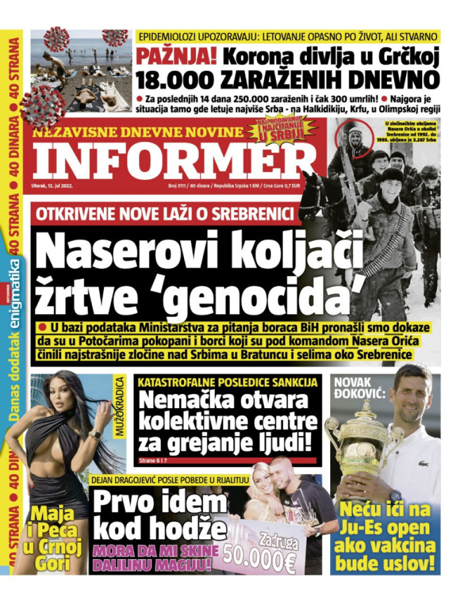 Prelistavanje štampe za utorak 12. jul 2022. godine
