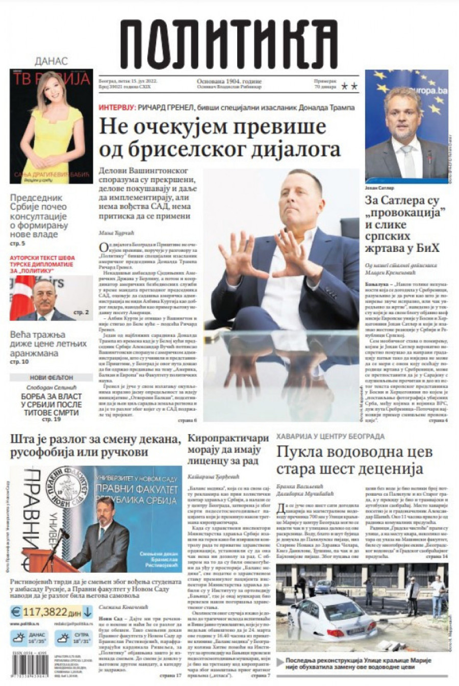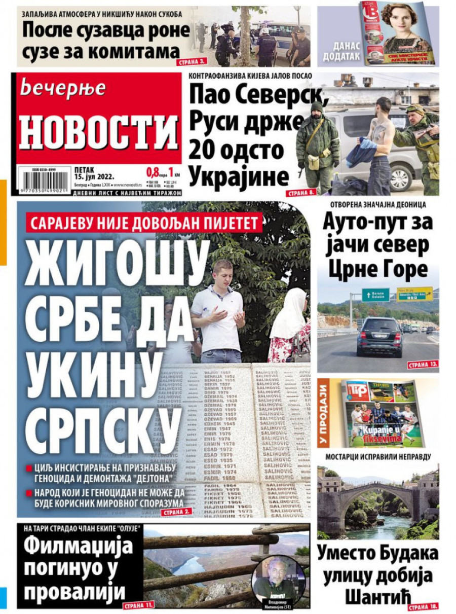 Prelistavanje štampe za petak 15. jul 2022. godine