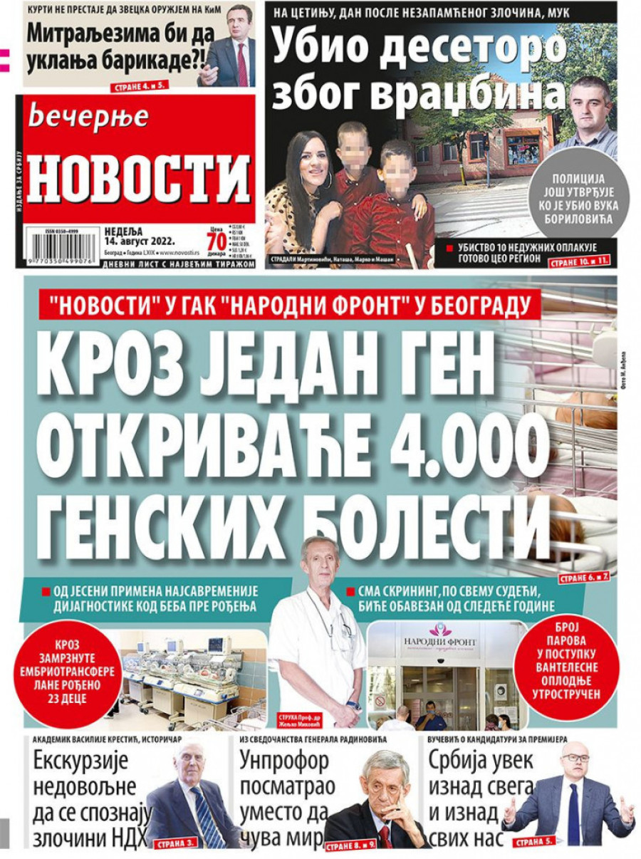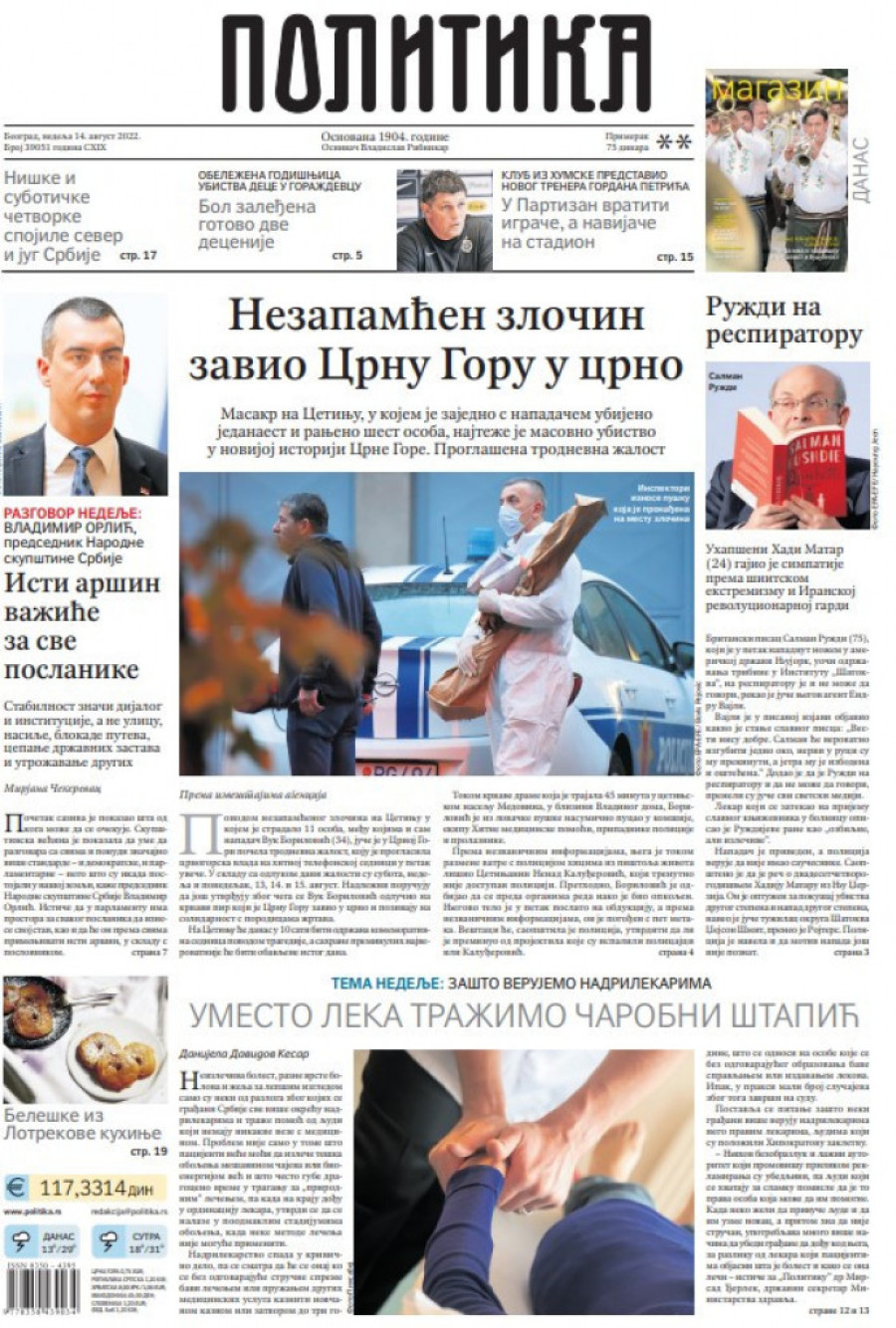 Prelistavanje štampe za nedelju 14. avgust 2022. godine
