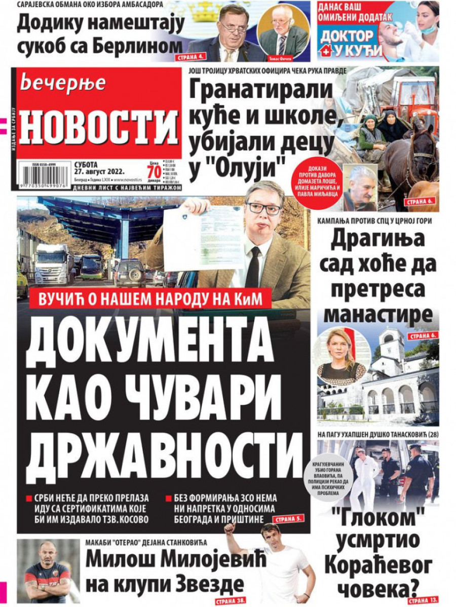 Prelistavanje štampe za subotu 27. avgust 2022. godine