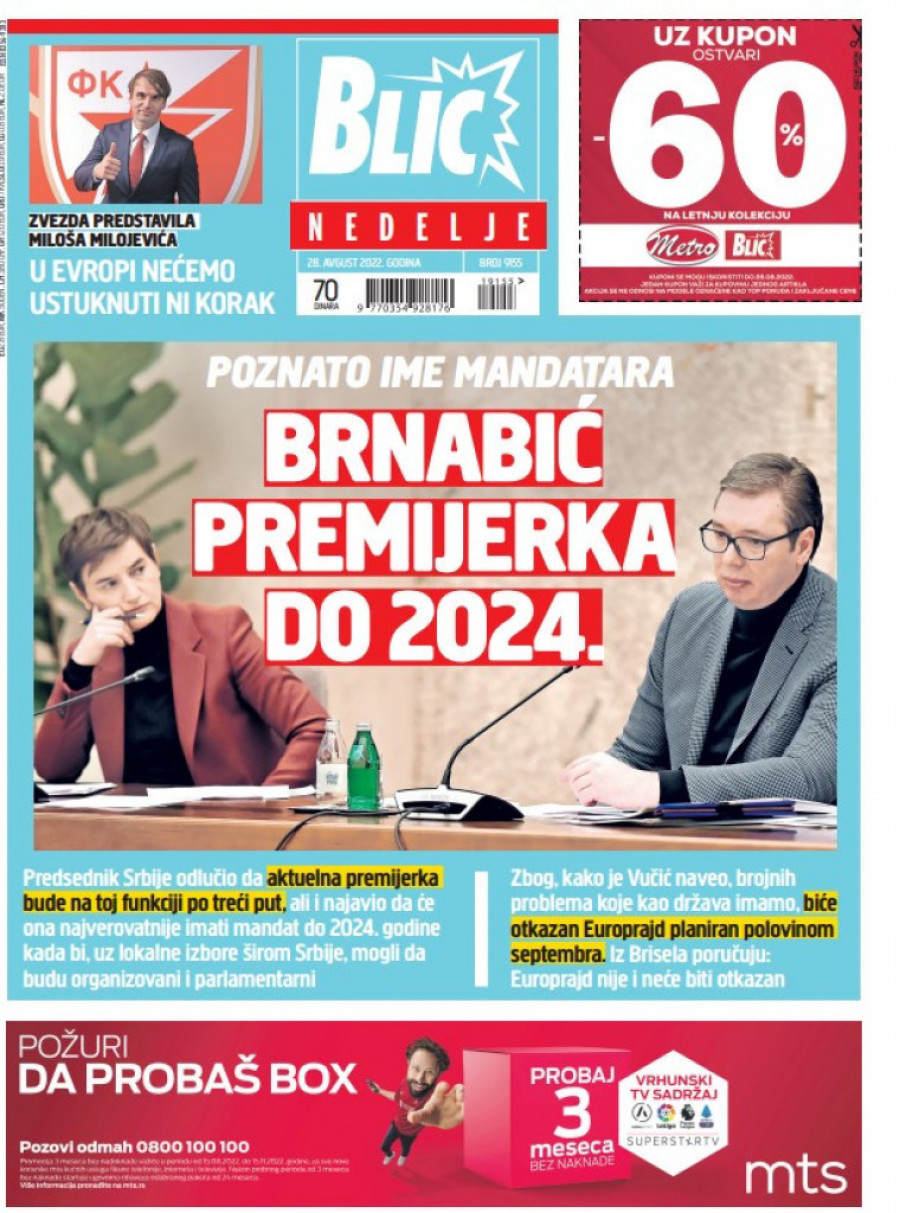 Prelistavanje štampe za nedelju 28. avgust 2022. godine