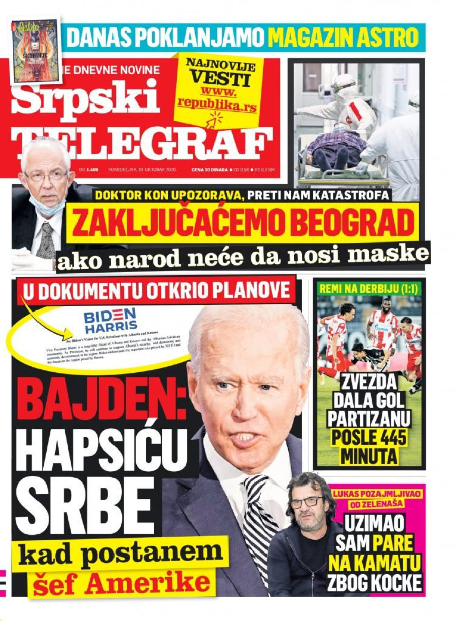 Prelistavanje štampe za ponedeljak 19. oktobar 2020. godine