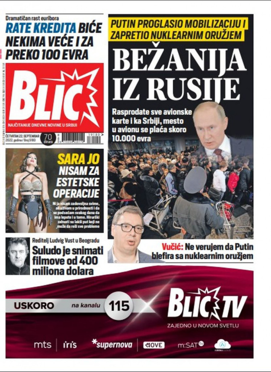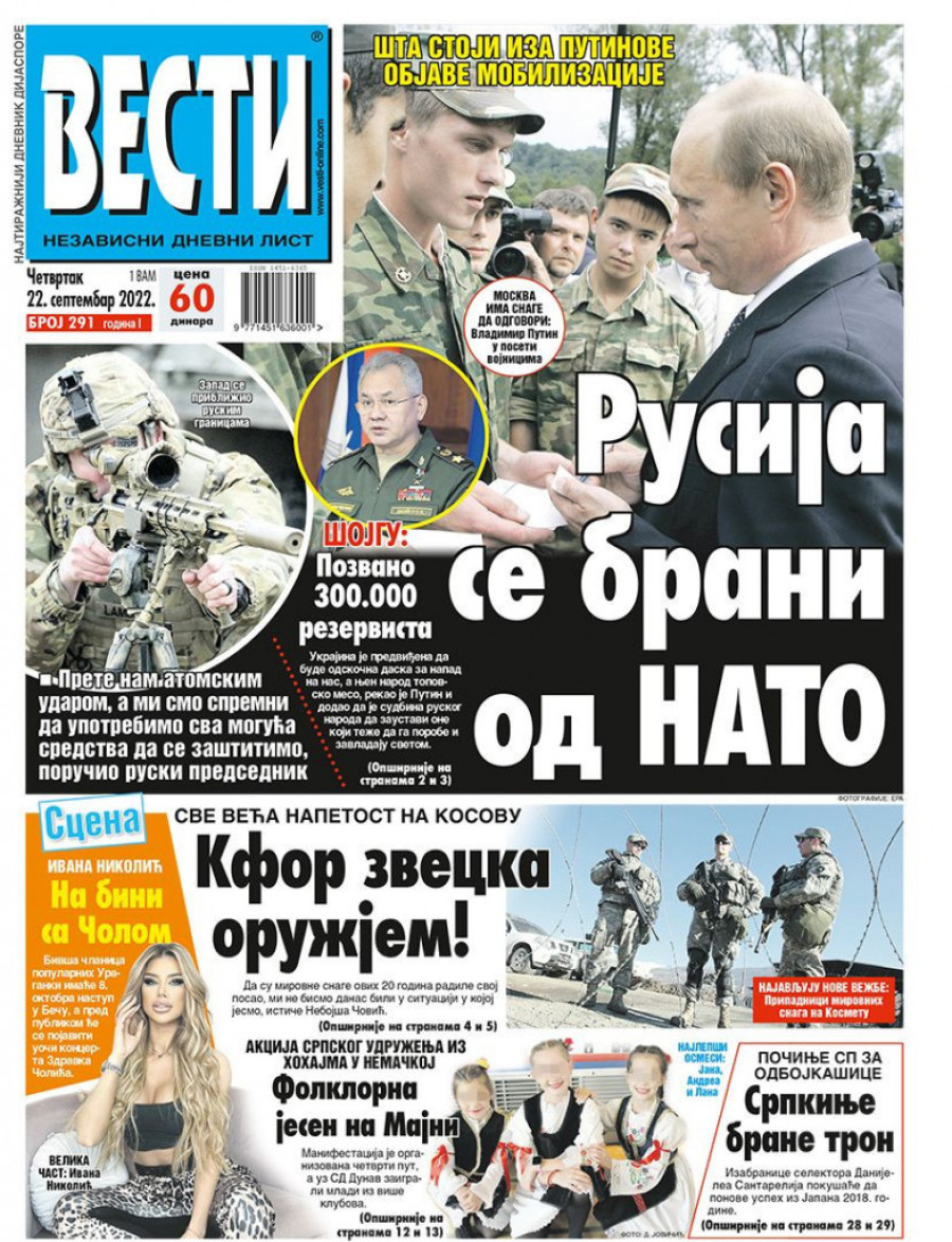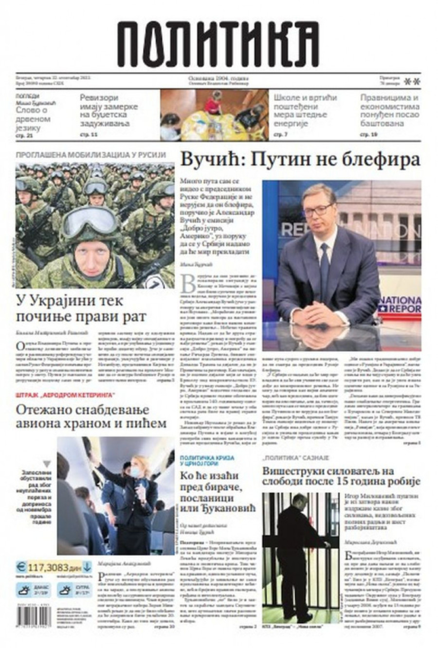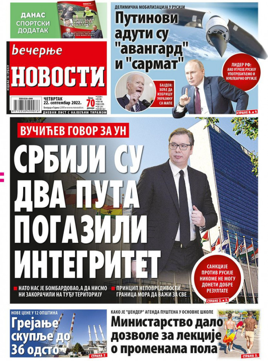 Prelistavanje štampe za četvrtak 22. septembar 2022. godine