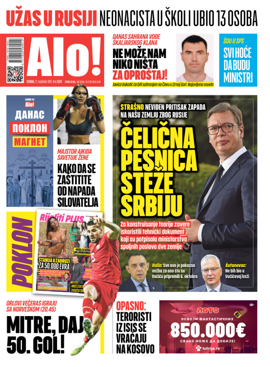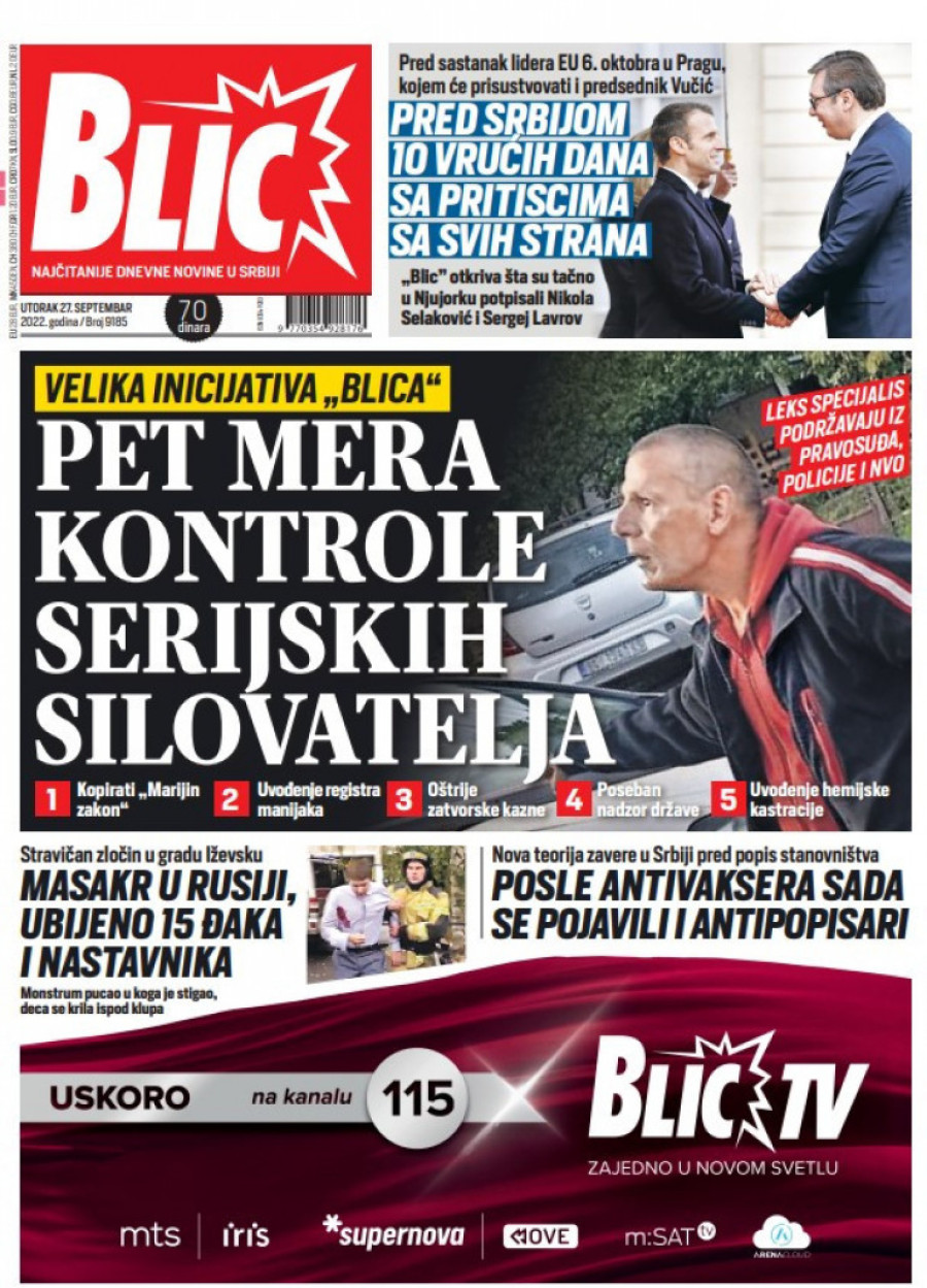 Dnevne novine u Srbiji za utorak 27. septembar 2022. godine na naslovnim stranama najavljuju brojne aktuelne društveno-političke teme i donose ekskluzivne priče.