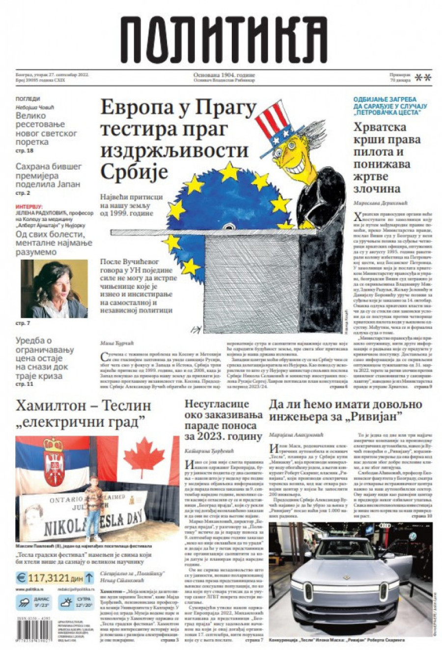 Prelistavanje štampe za utorak 27. septembar 2022. godine