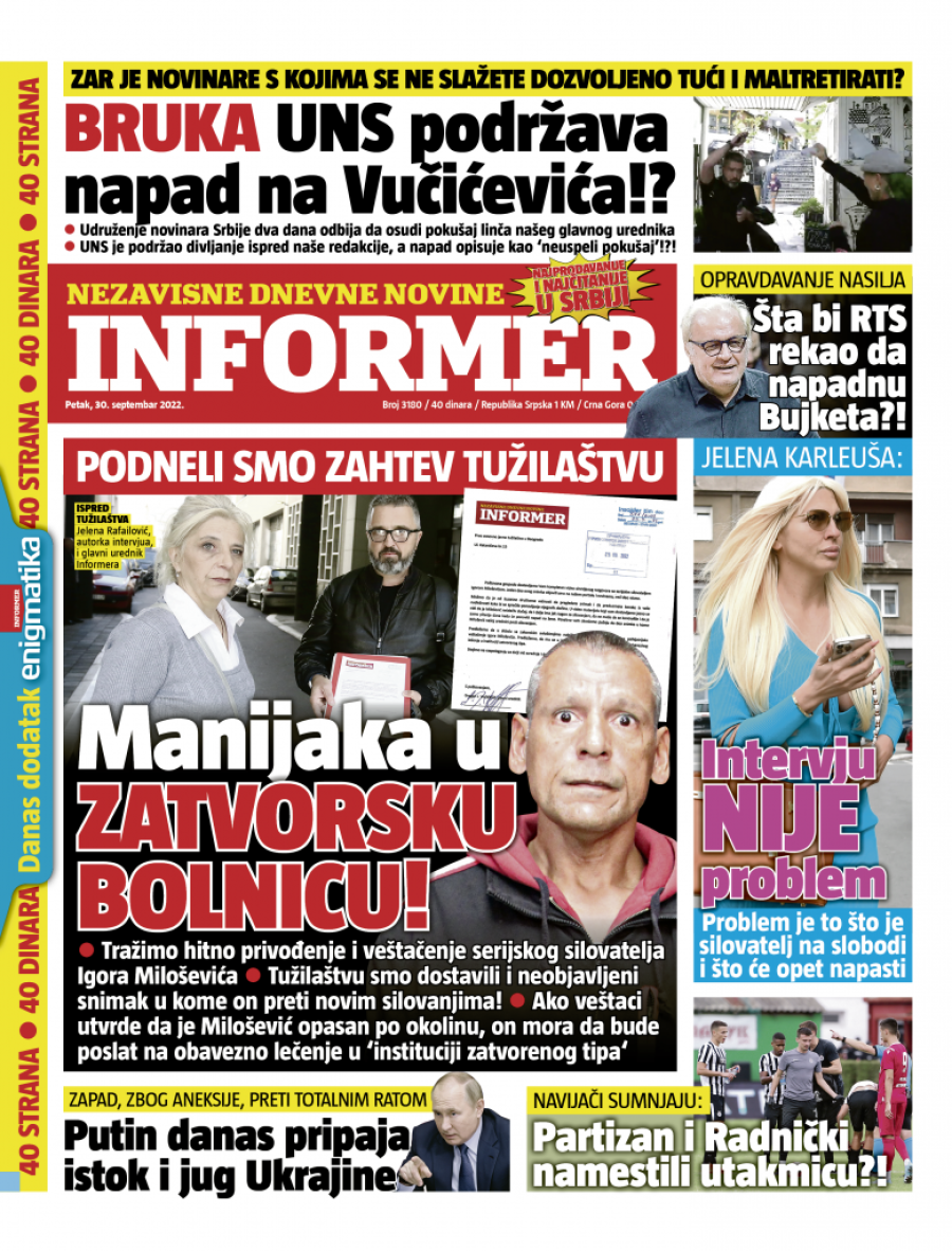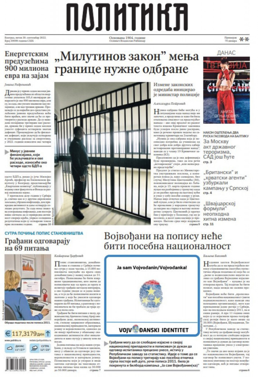 Prelistavanje štampe za petak 30. septembar 2022. godine