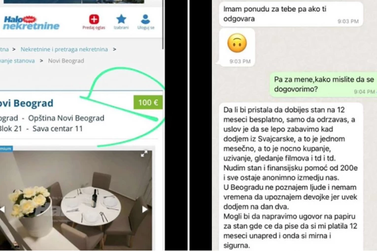 Stanodavac u porukama piše da bi ženska osoba mogla da živi i besplatno 12 meseci u stanu, ali da ga održava, kao i da se, kada on dođe iz Švajcarske, što je jednom mesečno, njih dvoje zabave