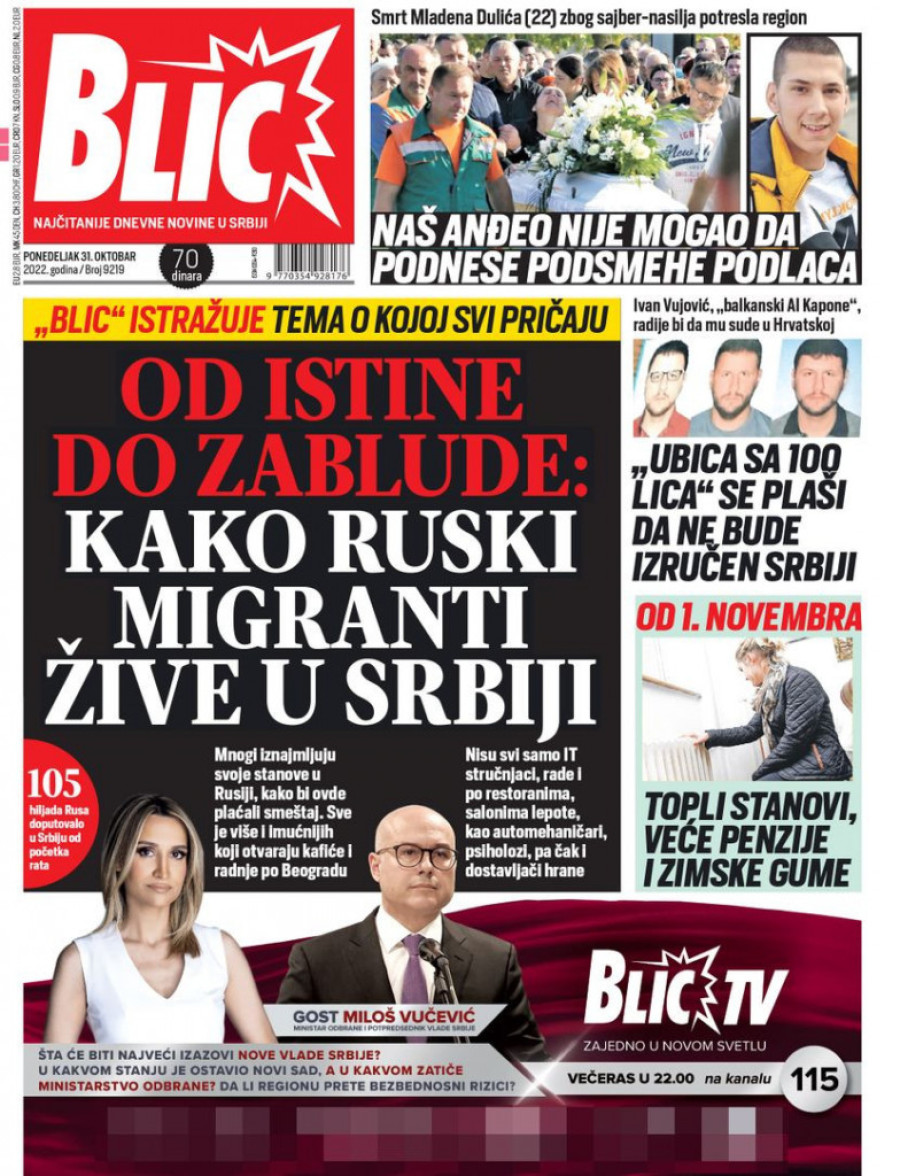 Prelistavanje štampe za ponedeljak 31. oktobar 2022. godine