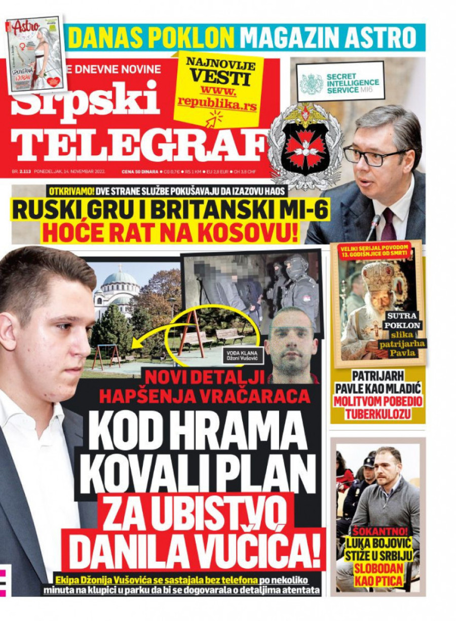 Dnevne novine u Srbiji za ponedeljak 14. novembar 2022. godine na naslovnim stranama najavljuju brojne aktuelne društveno-političke teme i donose ekskluzivne priče.