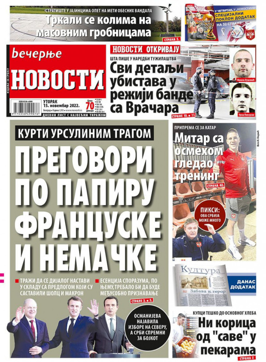 Prelistavanje štampe za utorak 15. novembar 2022. godine